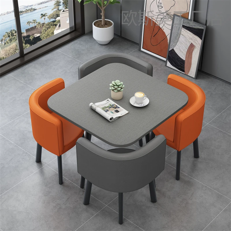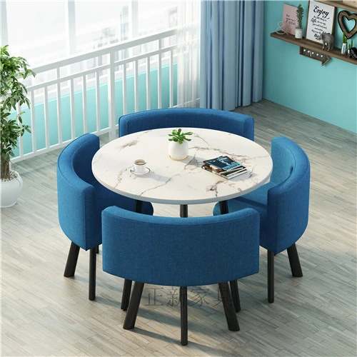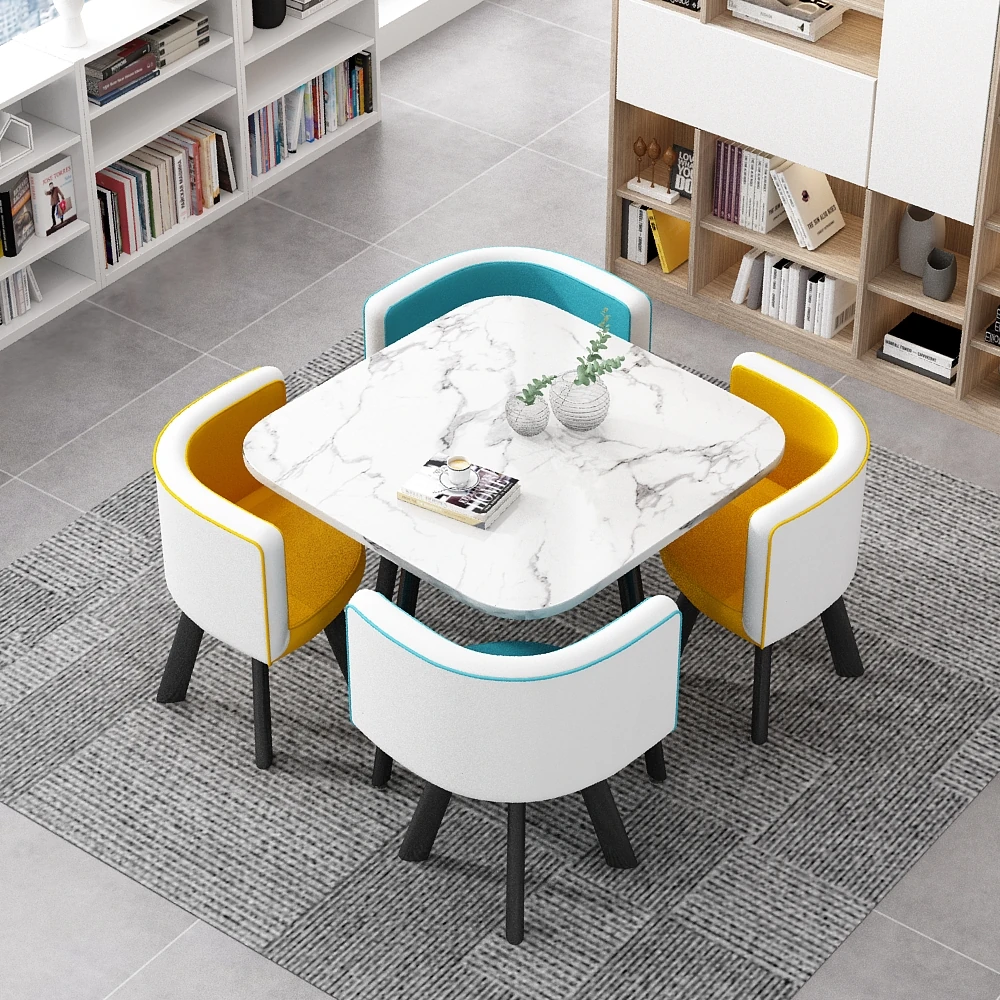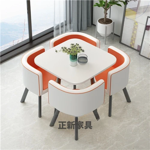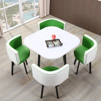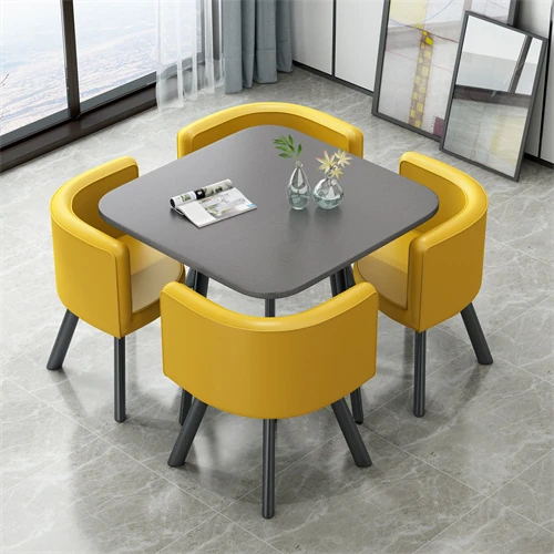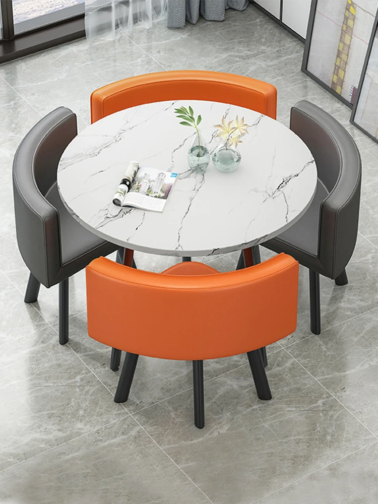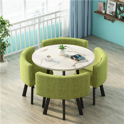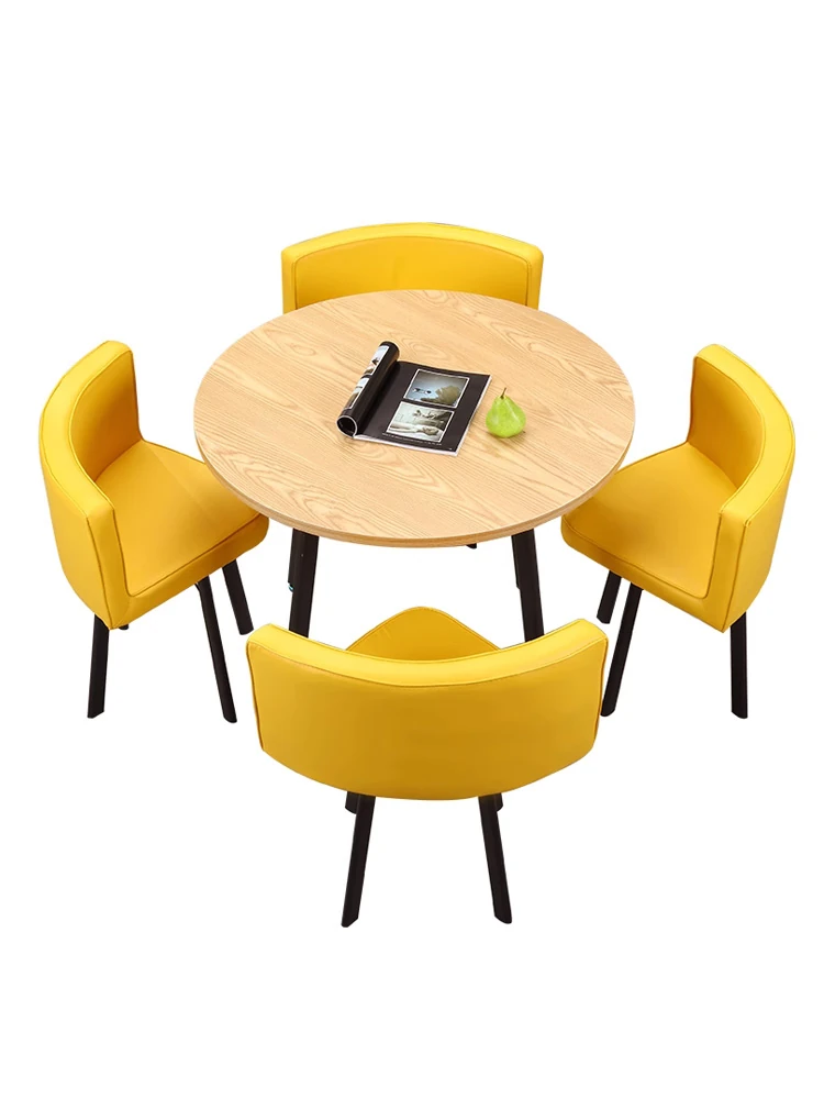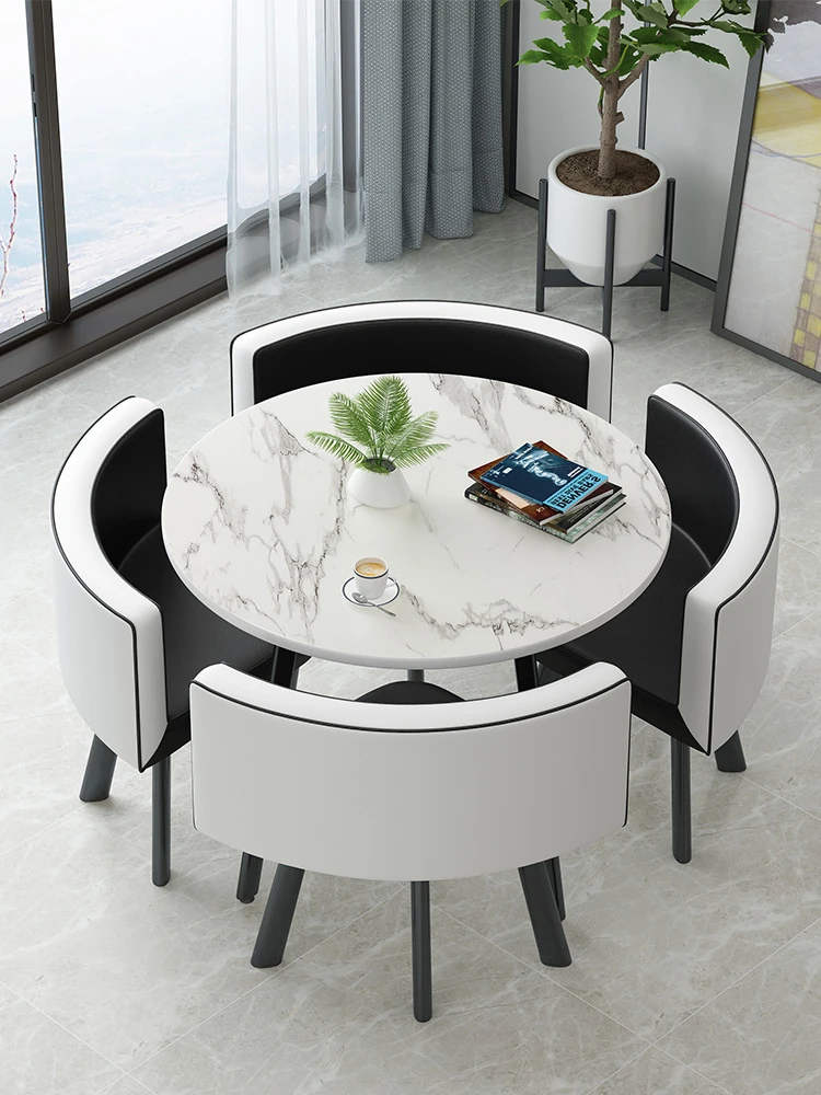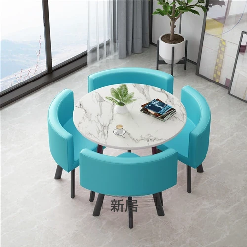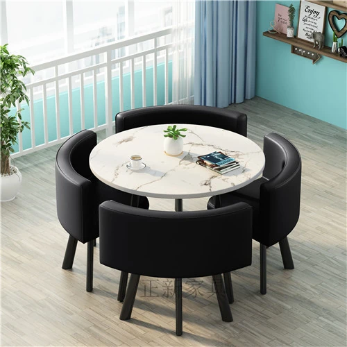 シンプルでスタイリッシュなビジネスミーティング用テーブル&チェアセット - 1テーブル4チェアの快適なオフィス&くつろぎスペース、円形デザインでおしゃれなカフェやティーショップに最適!