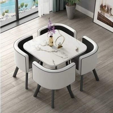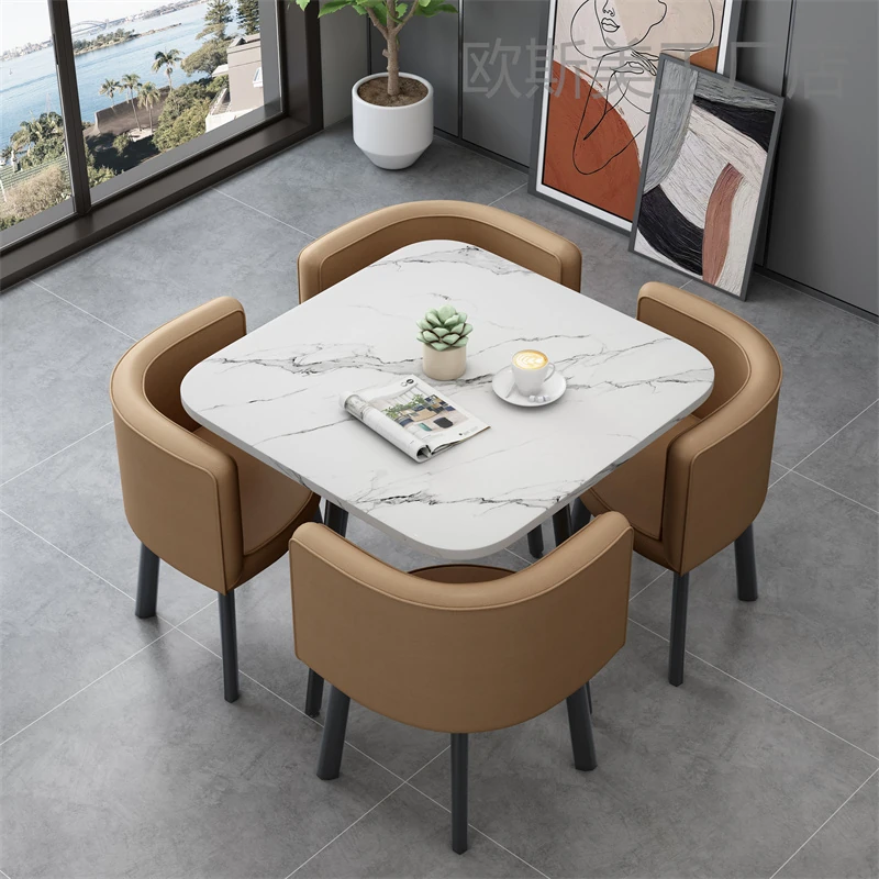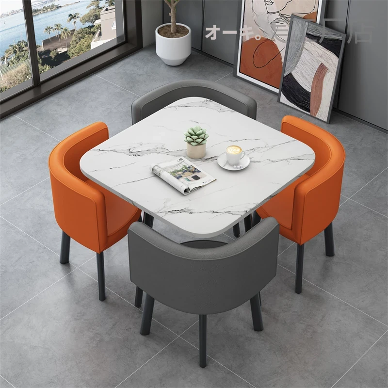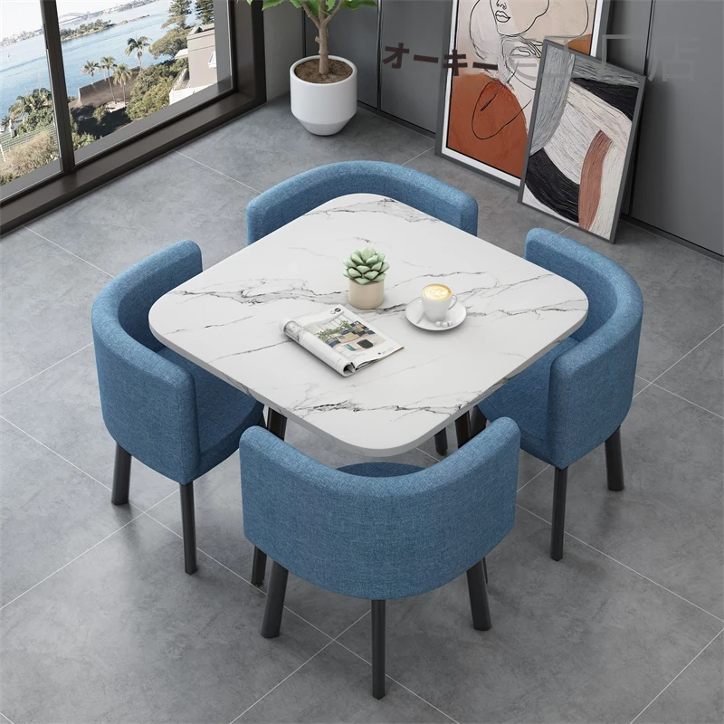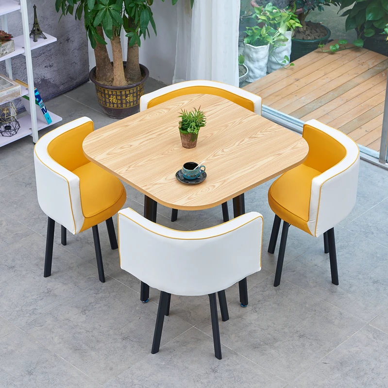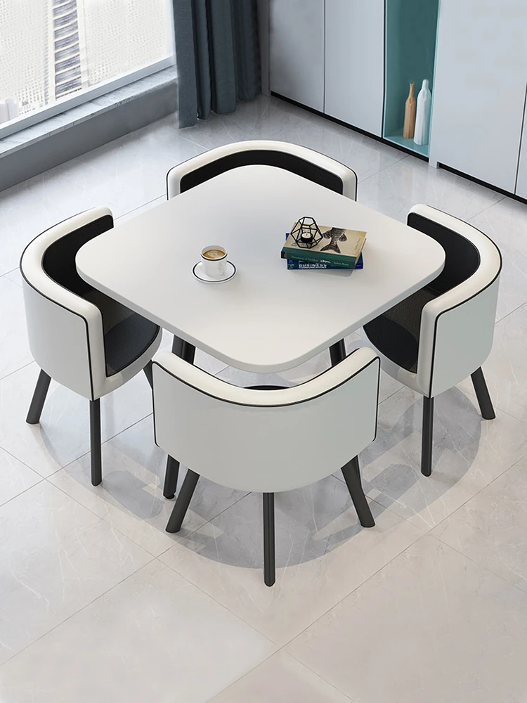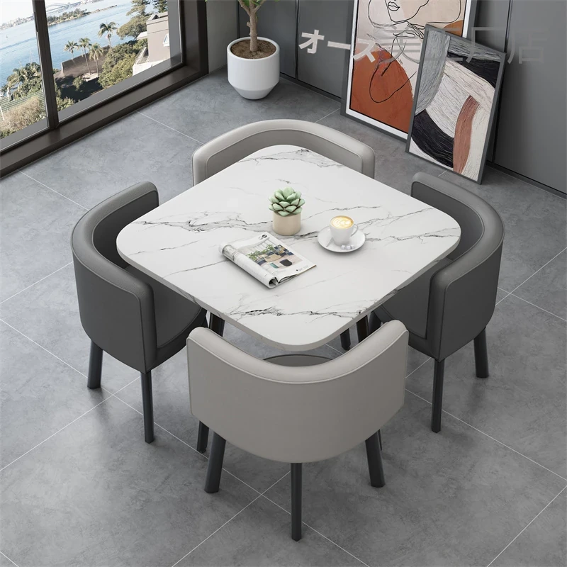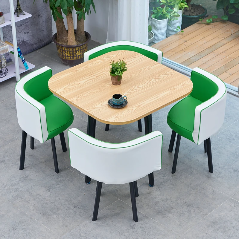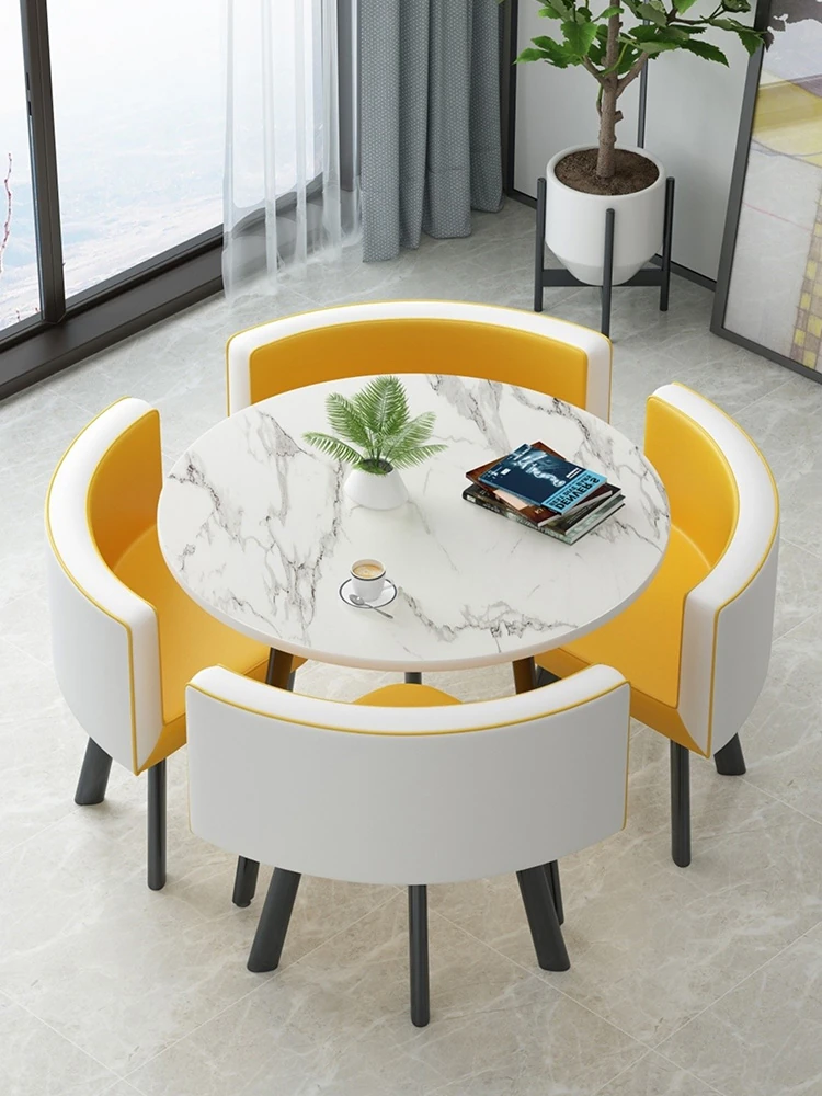 シンプルでスタイリッシュなビジネスミーティング用テーブル&チェアセット - 1テーブル4チェアの快適なオフィス&くつろぎスペース、円形デザインでおしゃれなカフェやティーショップに最適!