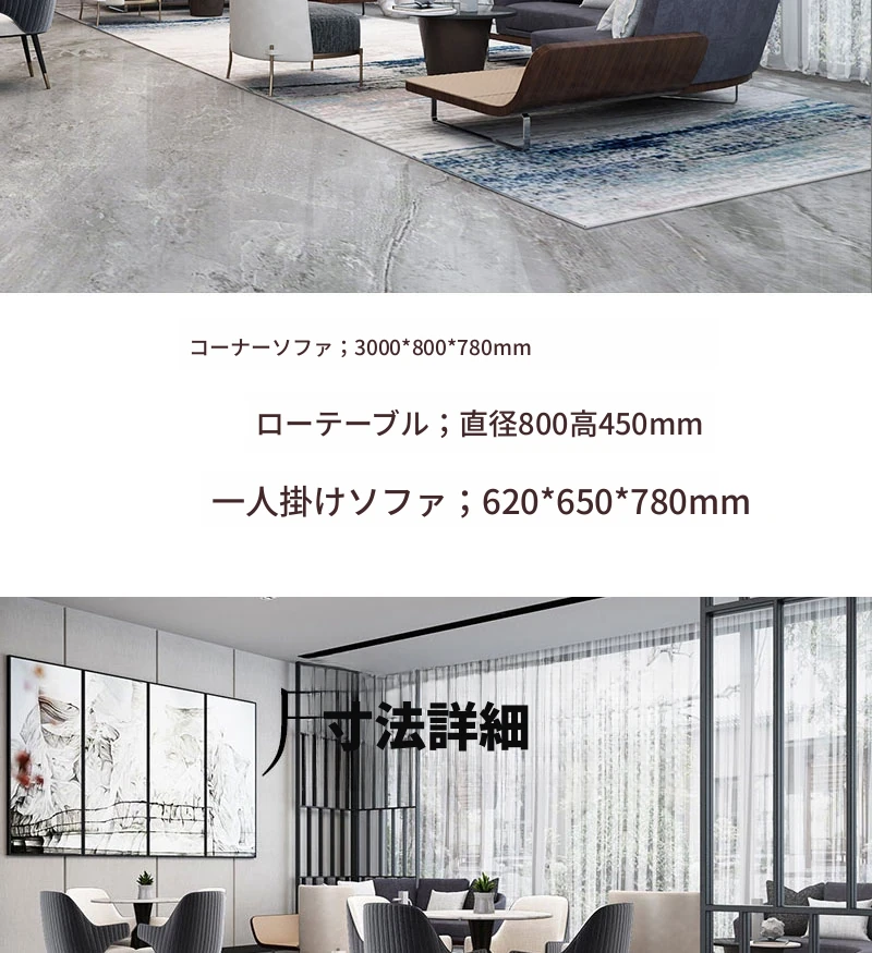 シンプルでスタイリッシュなロビー用ソファ|ホテルや美容院に最適なコーナーソファセット|快適な談話スペースを演出するテーブル・椅子のコンビネーション