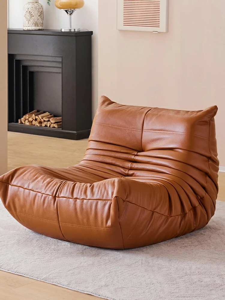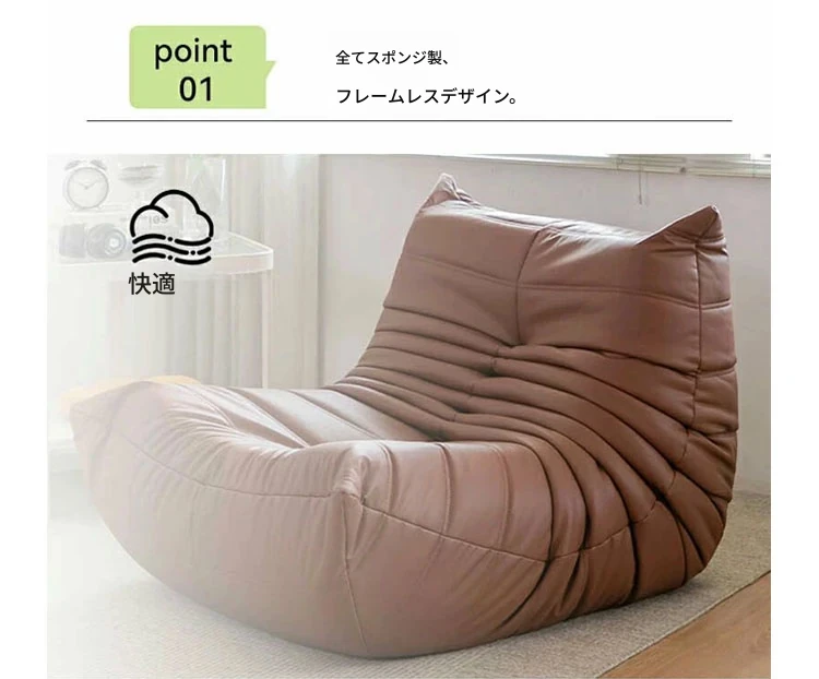 フラッグシップ版:一人用ソファ/ライトコーヒー色【S級猫爪皮素材+フレームなし全ウレタン構造】