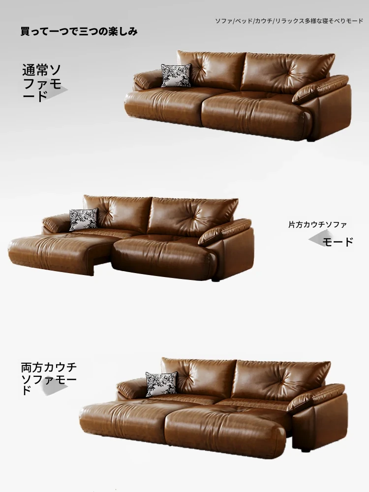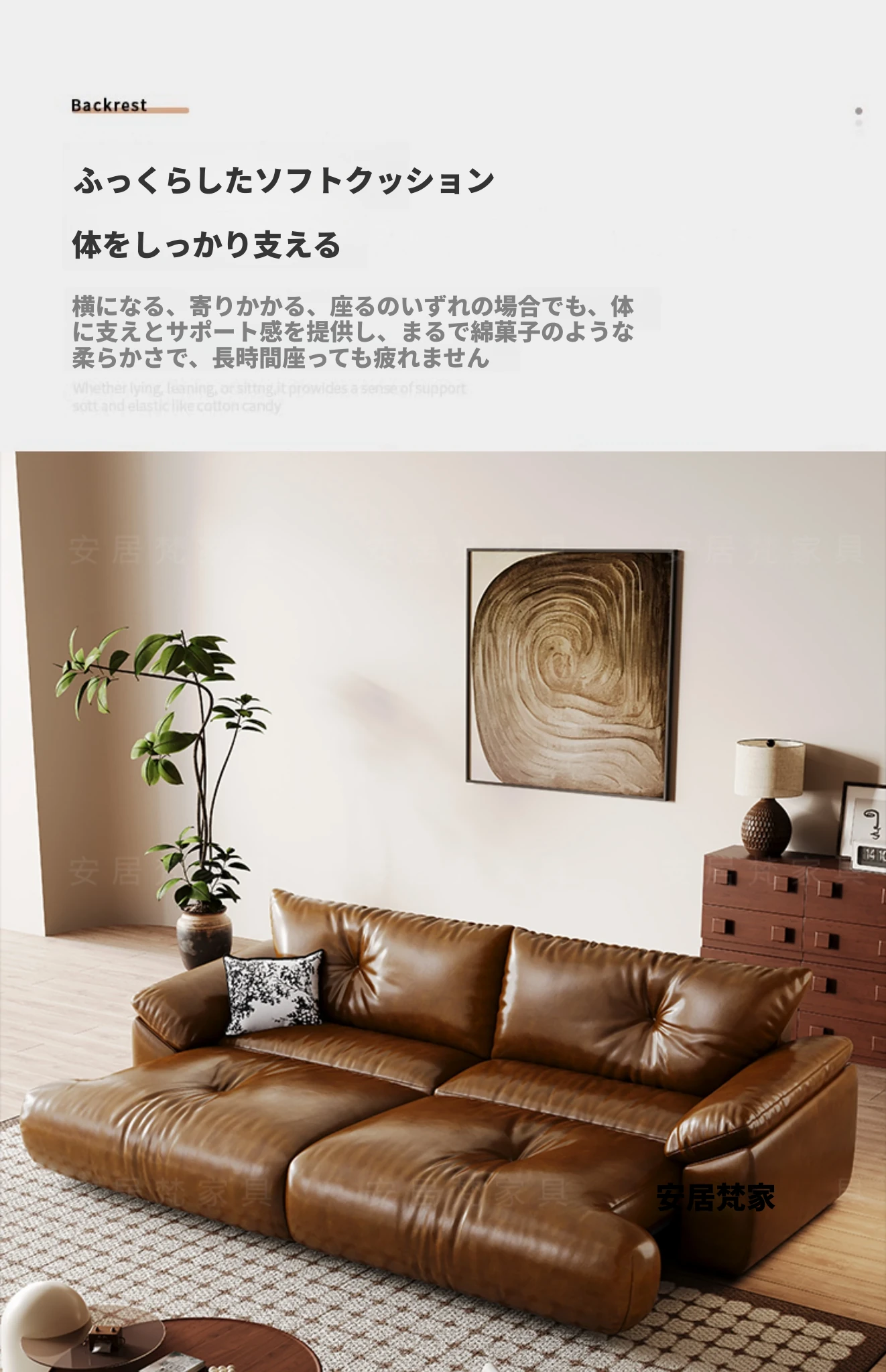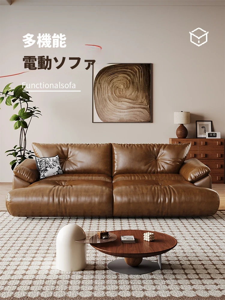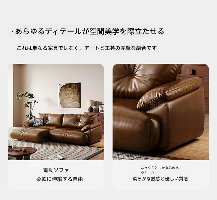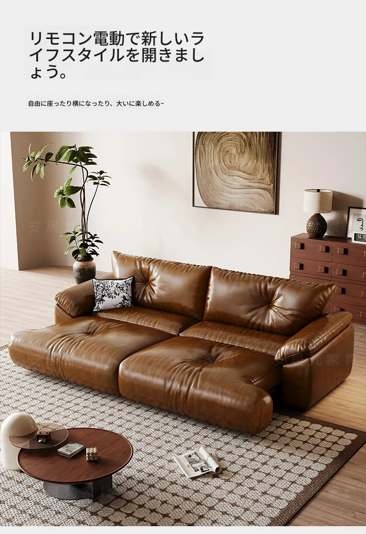 フランス風レトロ電動ソファ|リビングに最適な調整可能な高背もたれ|ヴィンテージオイルワックスレザー製ソファベッド|快適さとスタイルを兼ね備えた一品!