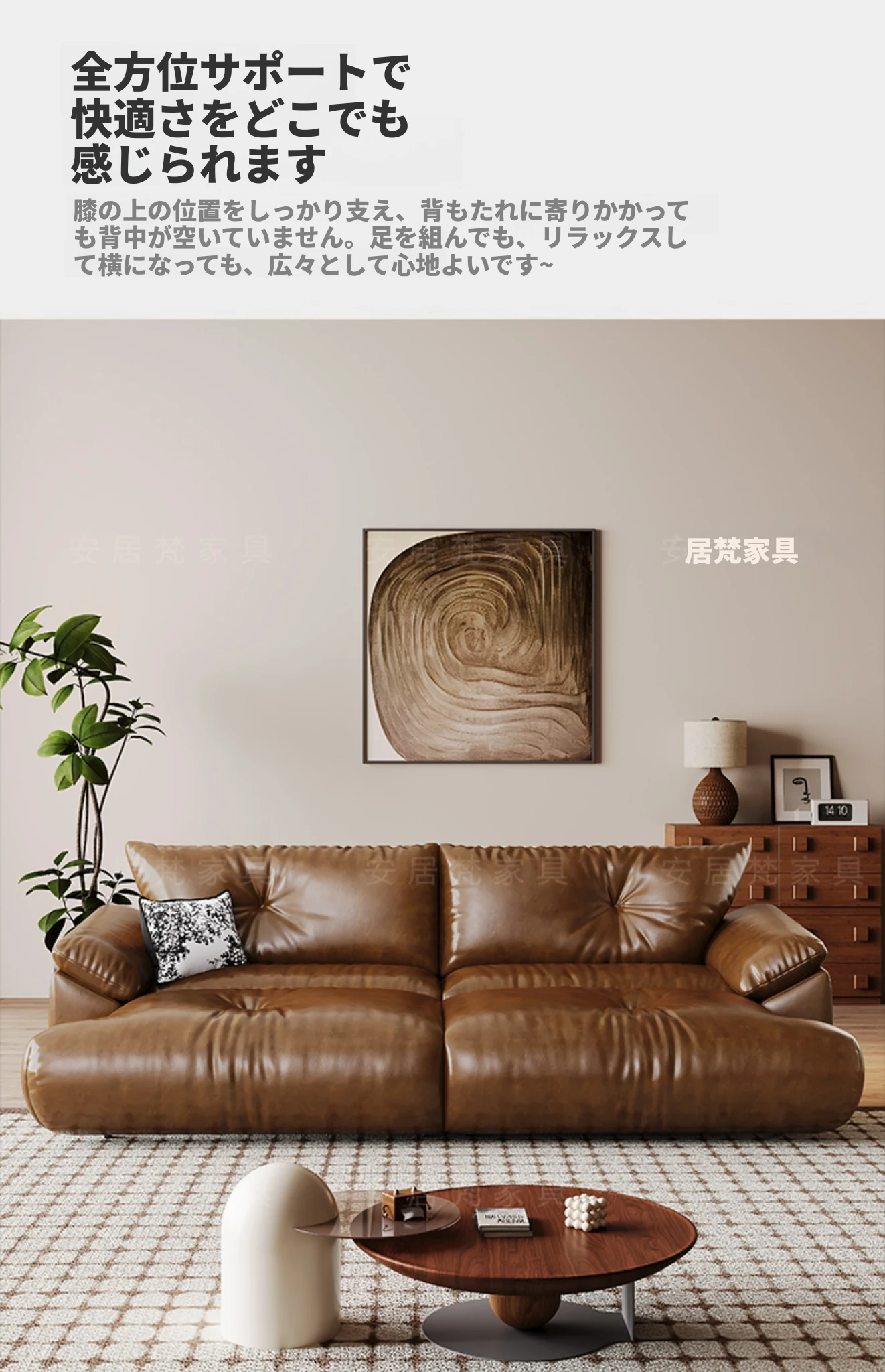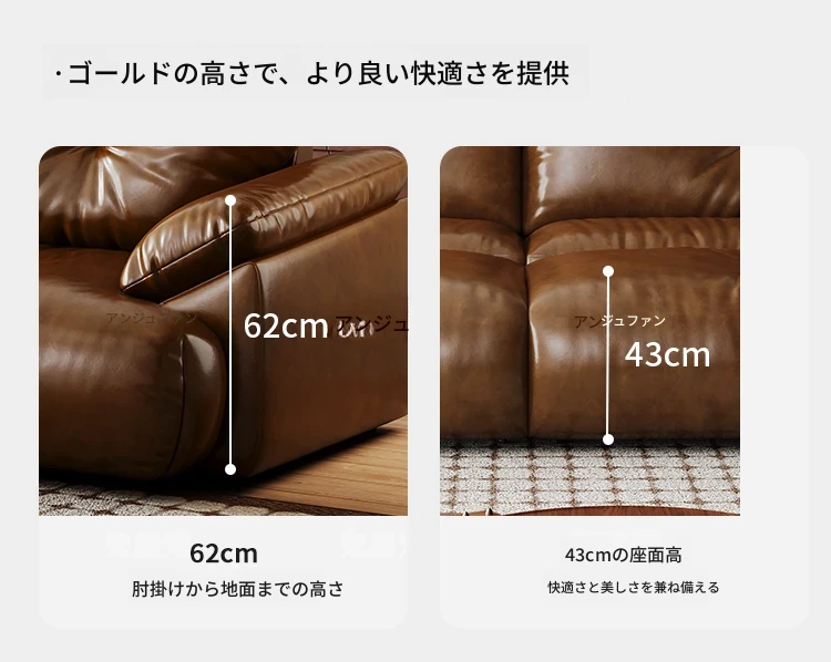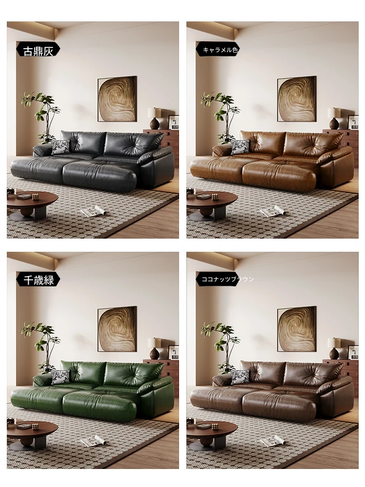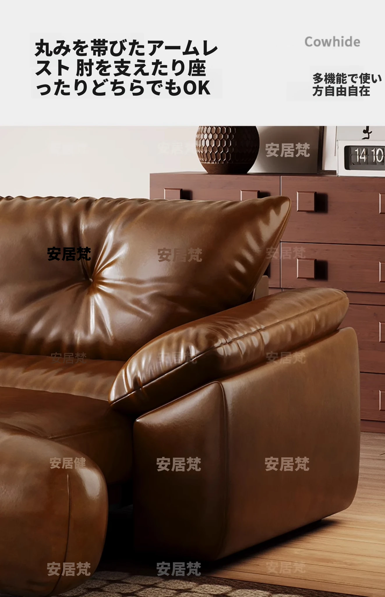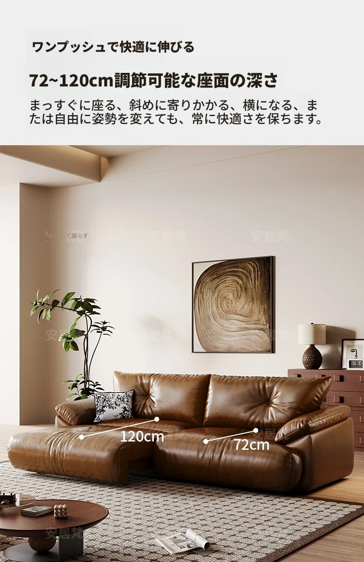 フランス風レトロ電動ソファ|リビングに最適な調整可能な高背もたれ|ヴィンテージオイルワックスレザー製ソファベッド|快適さとスタイルを兼ね備えた一品!