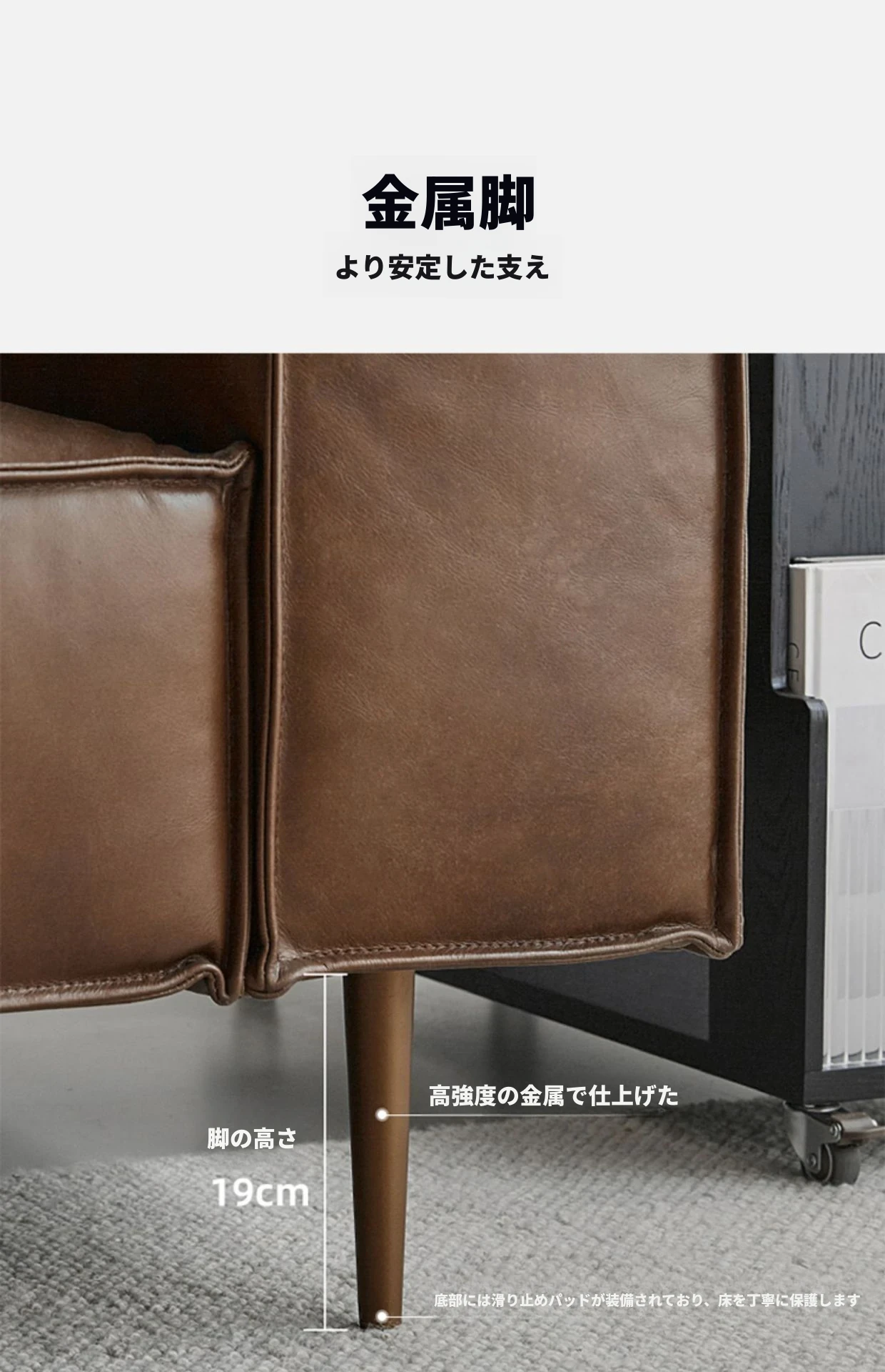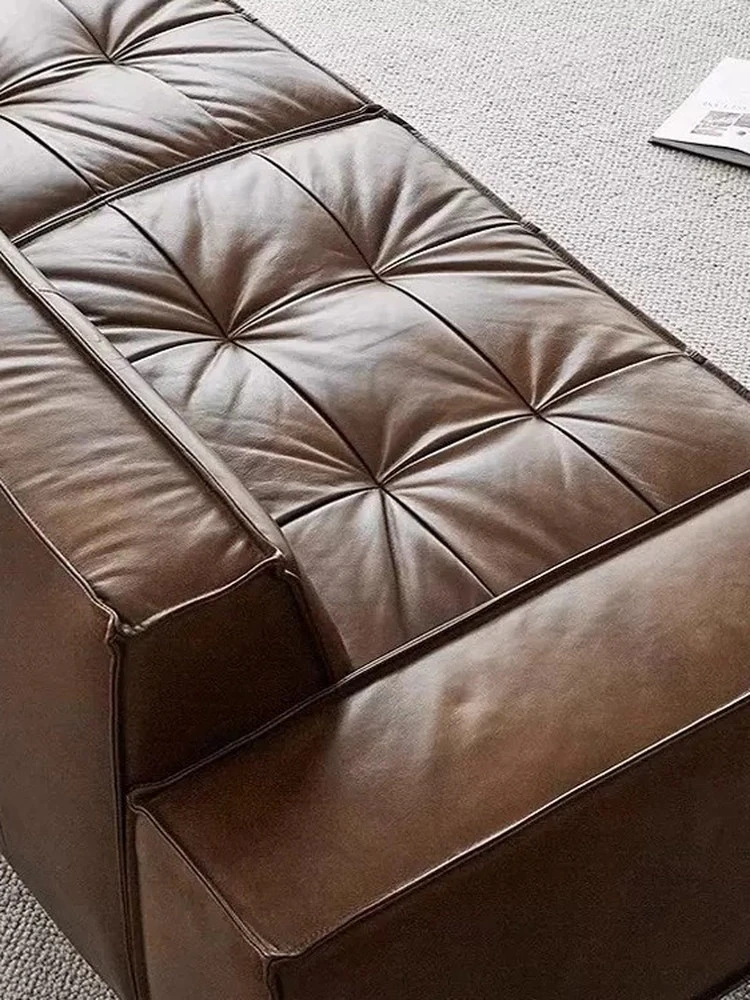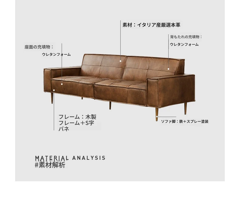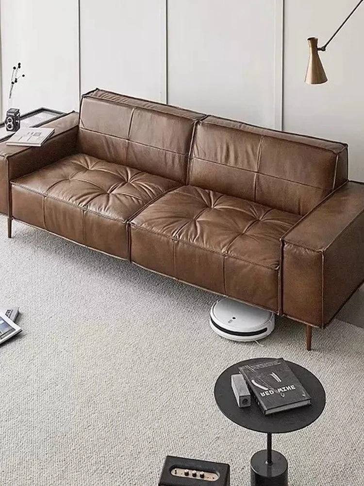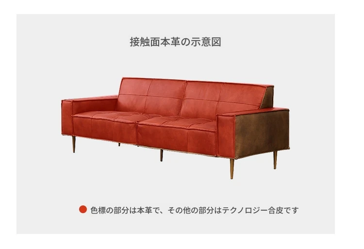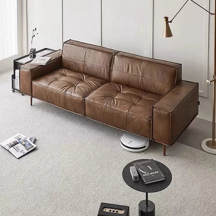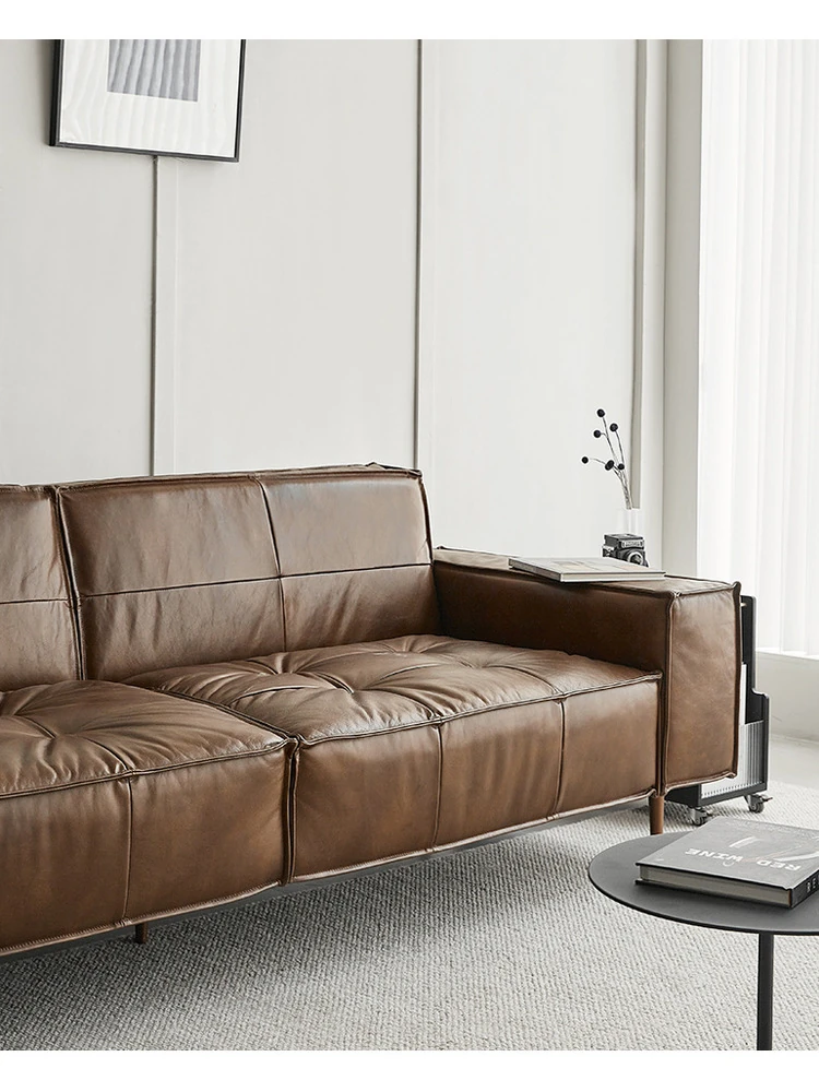 中古クラシックレトロ風の本革ソファー、小型リビングに最適!上質なトップグレイン牛革を使用したアメリカンスタイルのトーフブロック3人掛けソファーで、心地よいくつろぎの空間を演出します。