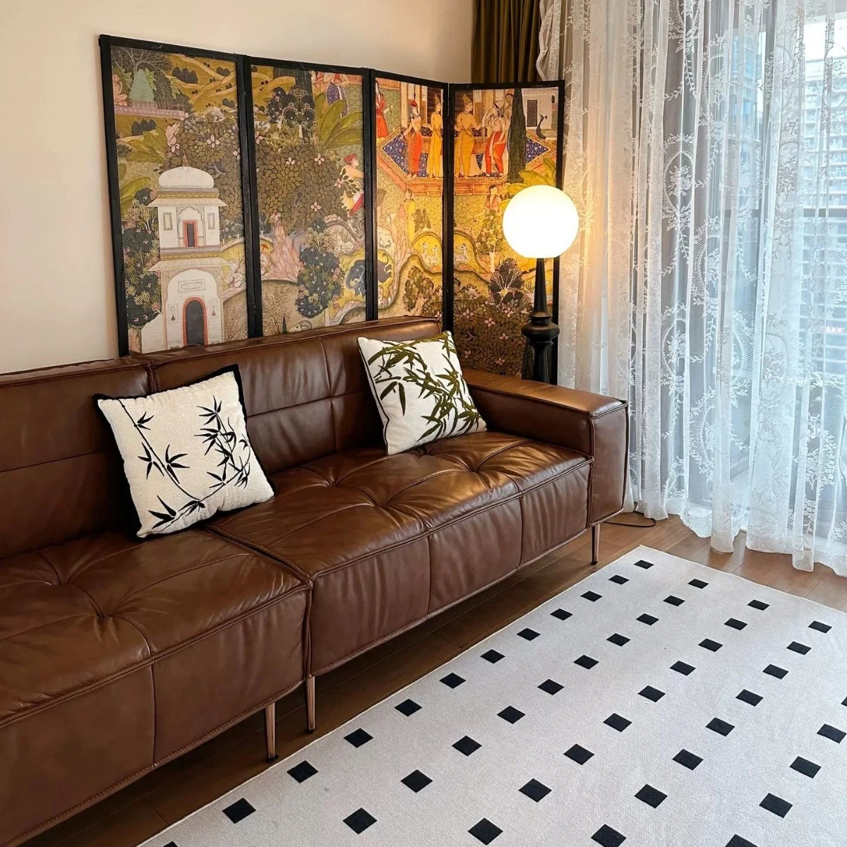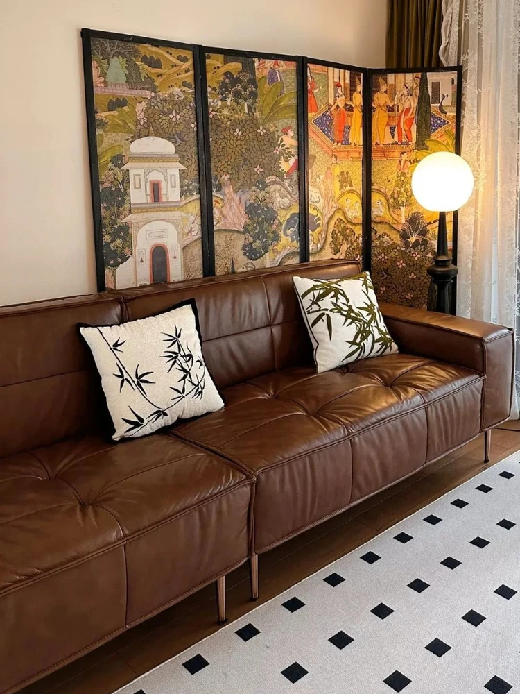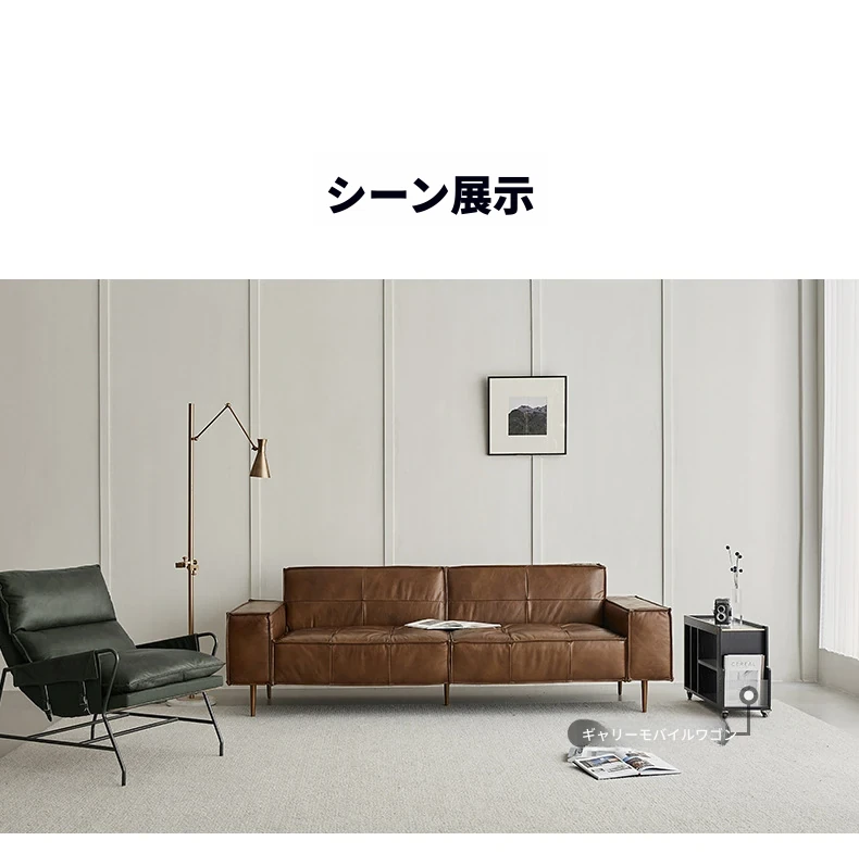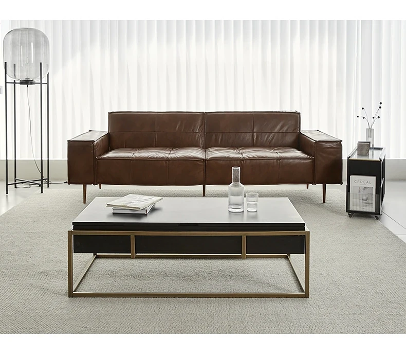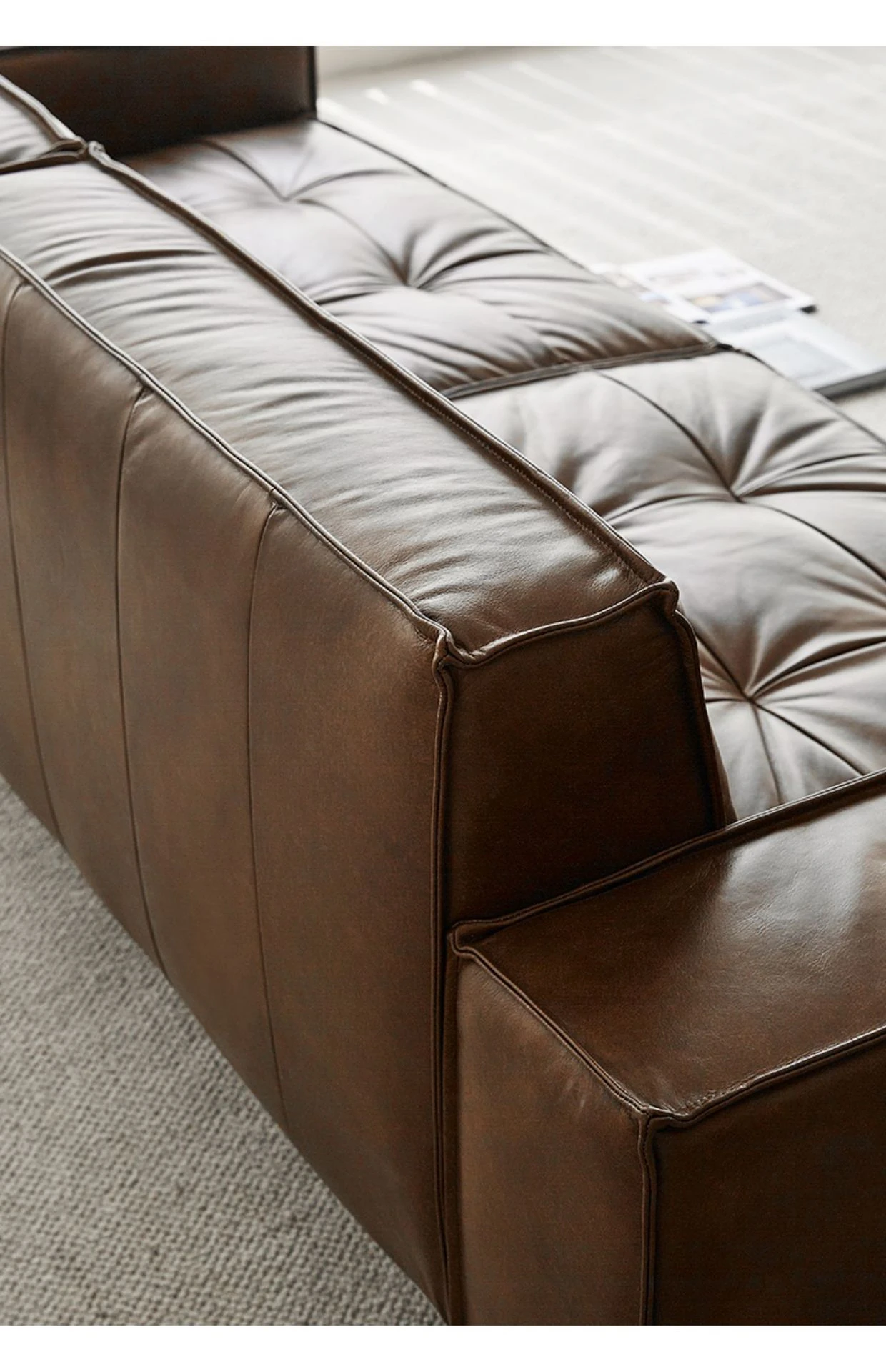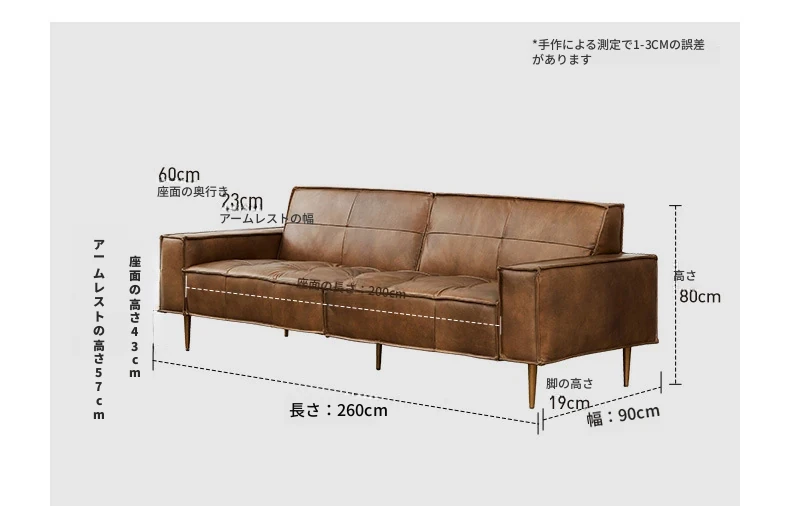中古クラシックレトロ風の本革ソファー、小型リビングに最適!上質なトップグレイン牛革を使用したアメリカンスタイルのトーフブロック3人掛けソファーで、心地よいくつろぎの空間を演出します。