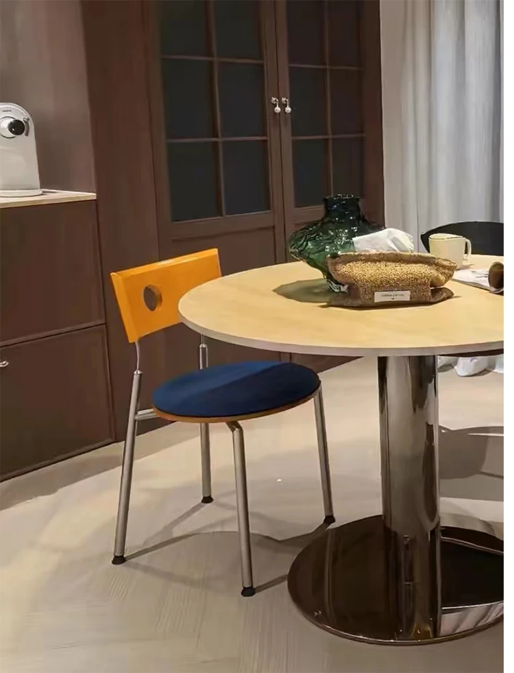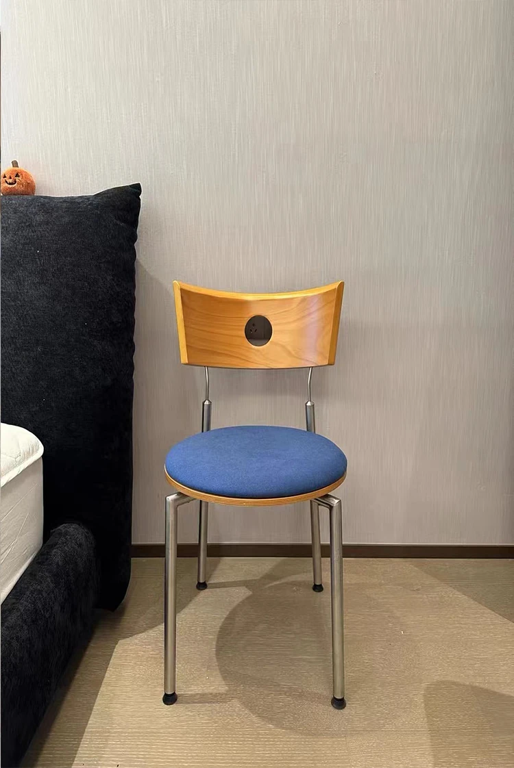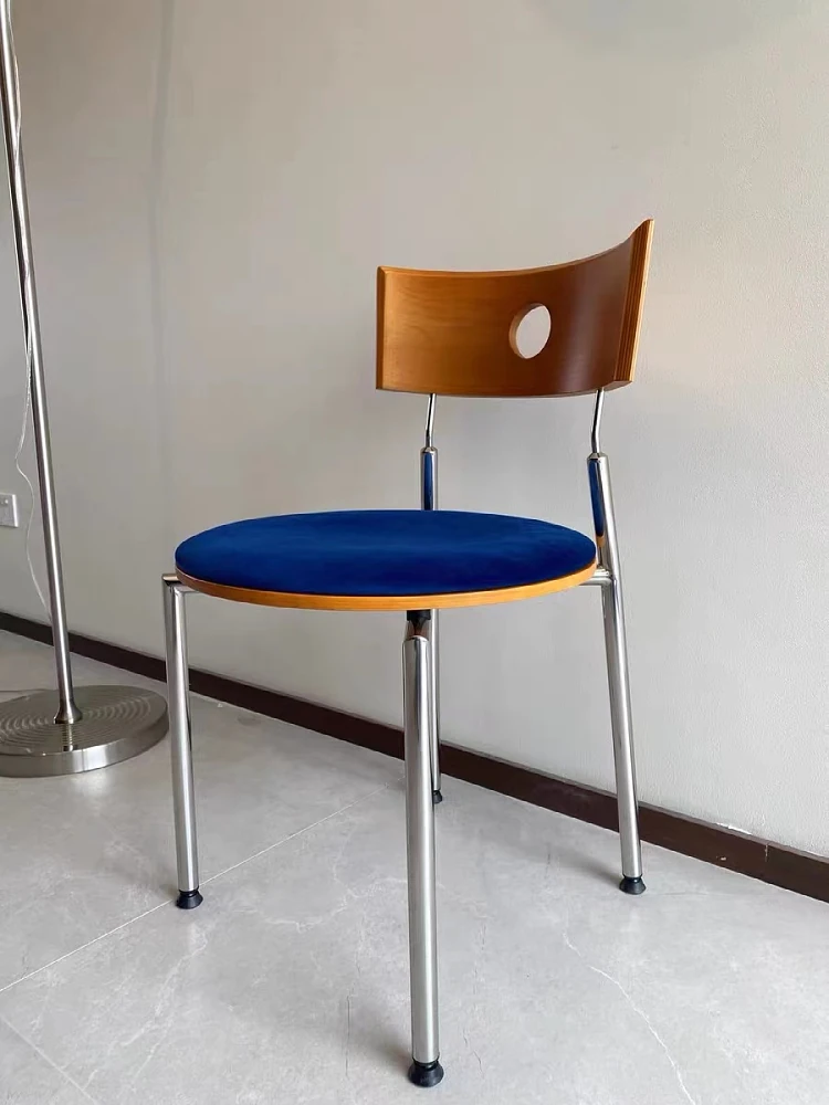 レトロな無垢材ダイニングチェア|家庭用背もたれ付き|バウハウススタイル|ヴィンテージデザインのスチール製レストラン用スツール|洗練されたデザイナーチェアで、おしゃれな食卓を演出!