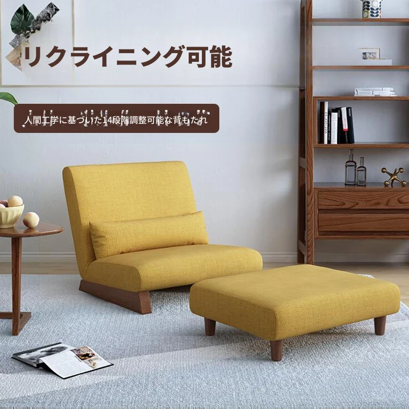 フラッグシップ版:ソファ+フットスツール【明るい黄色】【Sランクのコットンリネン生地+高反発ウレタン】