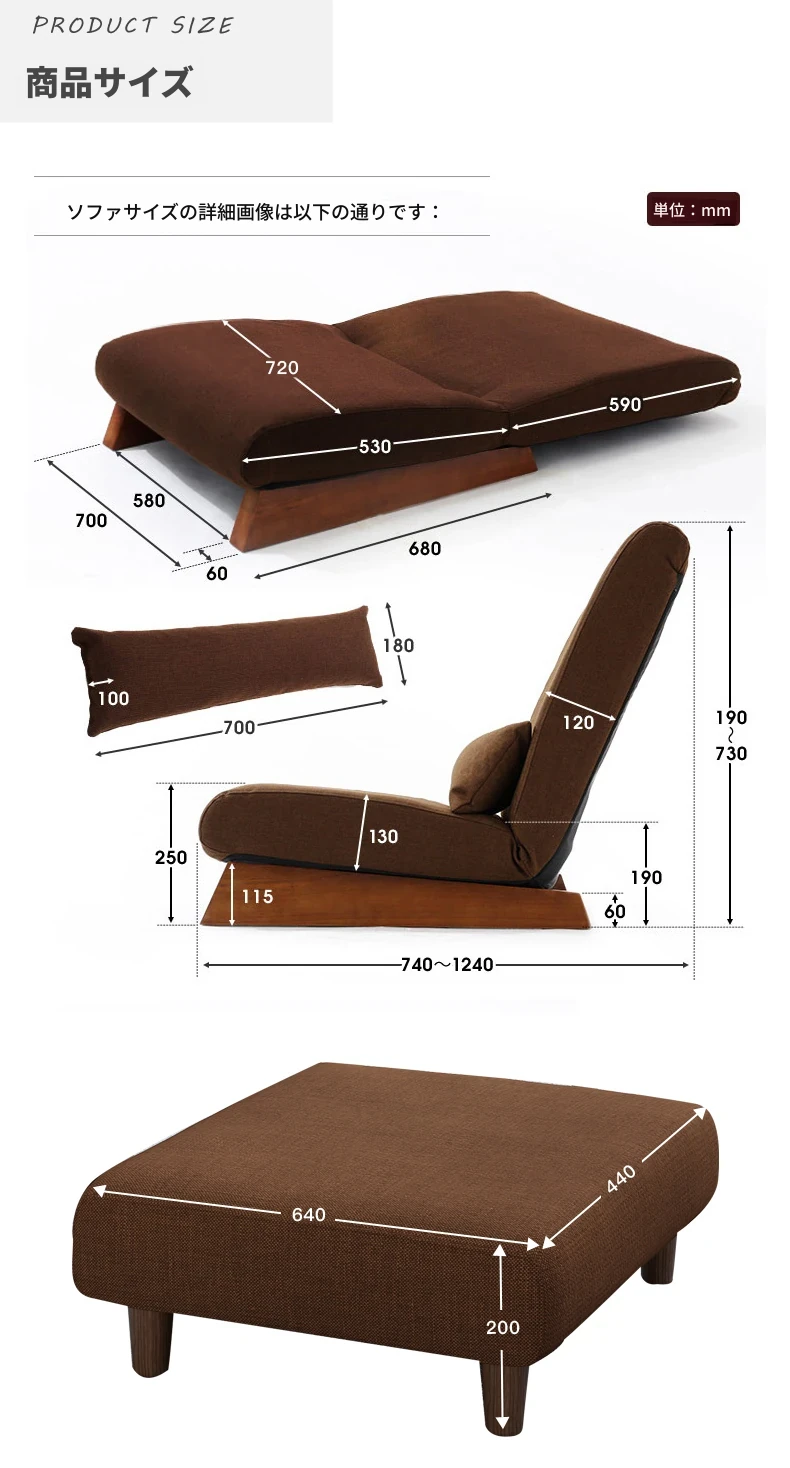 フラッグシップ版:ソファ+フットスツール【コーヒー色】【Sランクのコットンリネン生地+高反発ウレタン】