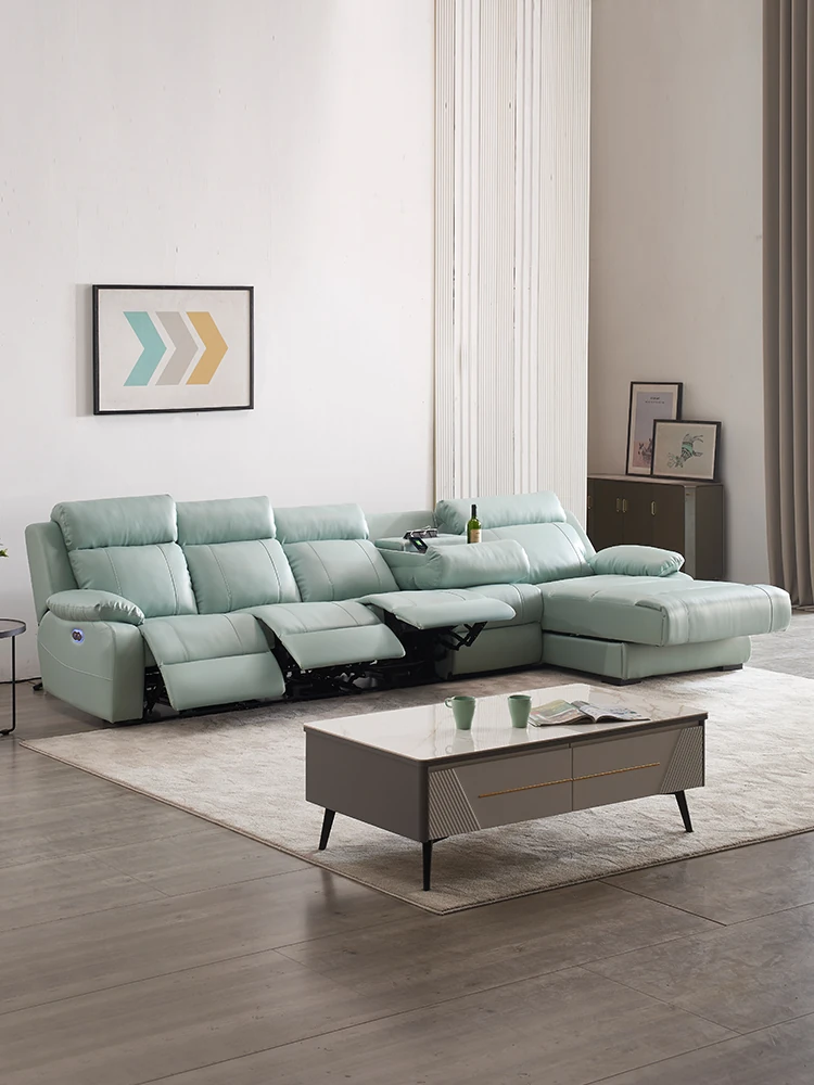 本革マルチファンクションソファー|高級レザー使用の電動リクライニング|現代的なデザインで、小さな部屋にもぴったり|家庭用シネマ体験を提供するラグジュアリーなリビング空間を実現!