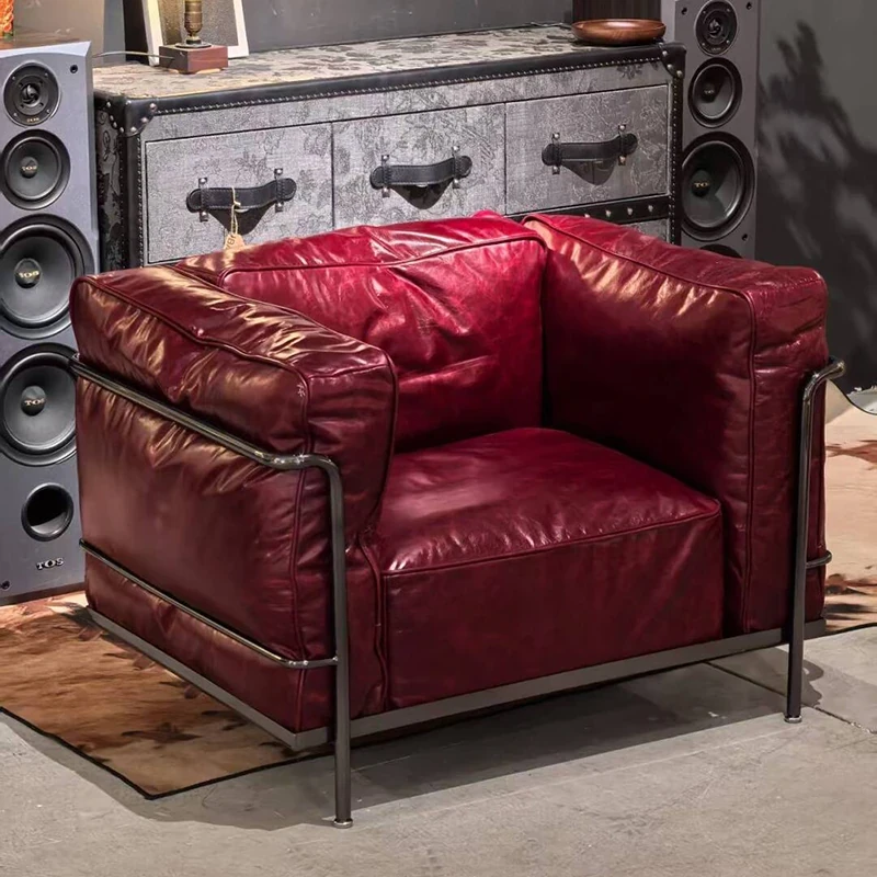 レトロ風LC3ソファ|中古デザイン師ル・コルビュジエの名作ソファ|ステンレススチール使用|クリエイティブなダウンソファで、あなたの空間に洗練されたスタイルを!