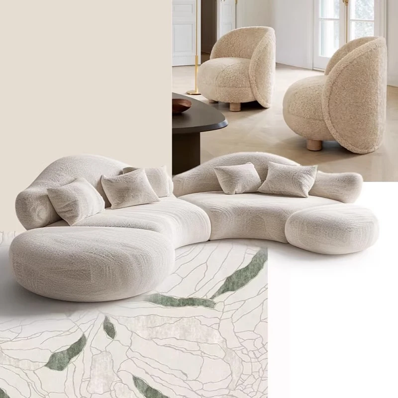 モダンミニマルクリーム風リビングアイランドクリエイティブ異形ソファアーチ型コンビネーション布製美容院向け小紅書スタイル
