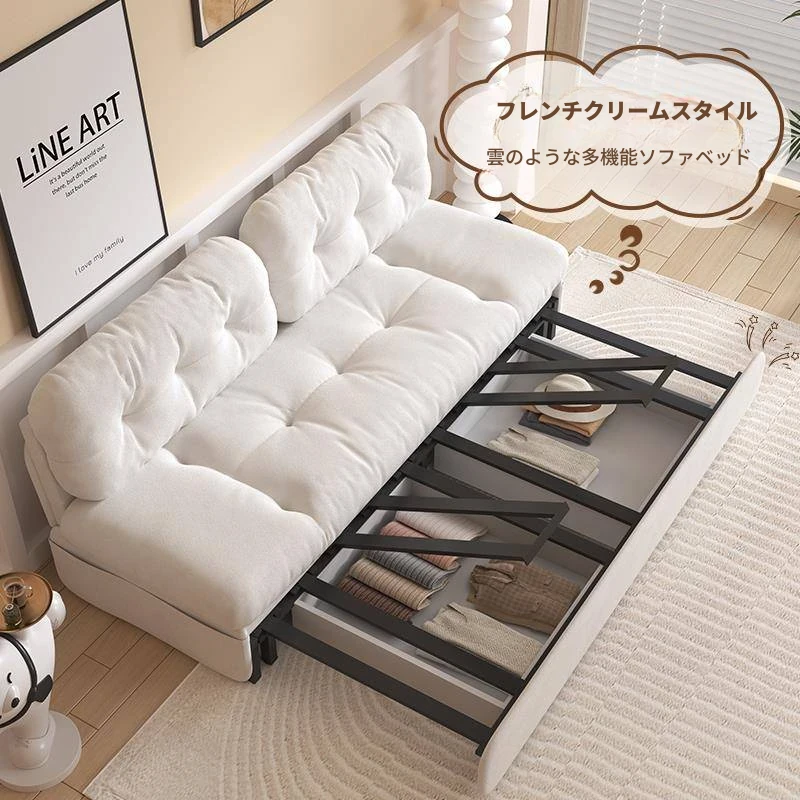 【香港・マカオ送料無料】フレンチスタイルのソファベッド!雲のようなふんわりデザイン、リビングにぴったりの小型折りたたみ2WAY仕様。2024年新作、あなたの空間に優雅さをプラス!