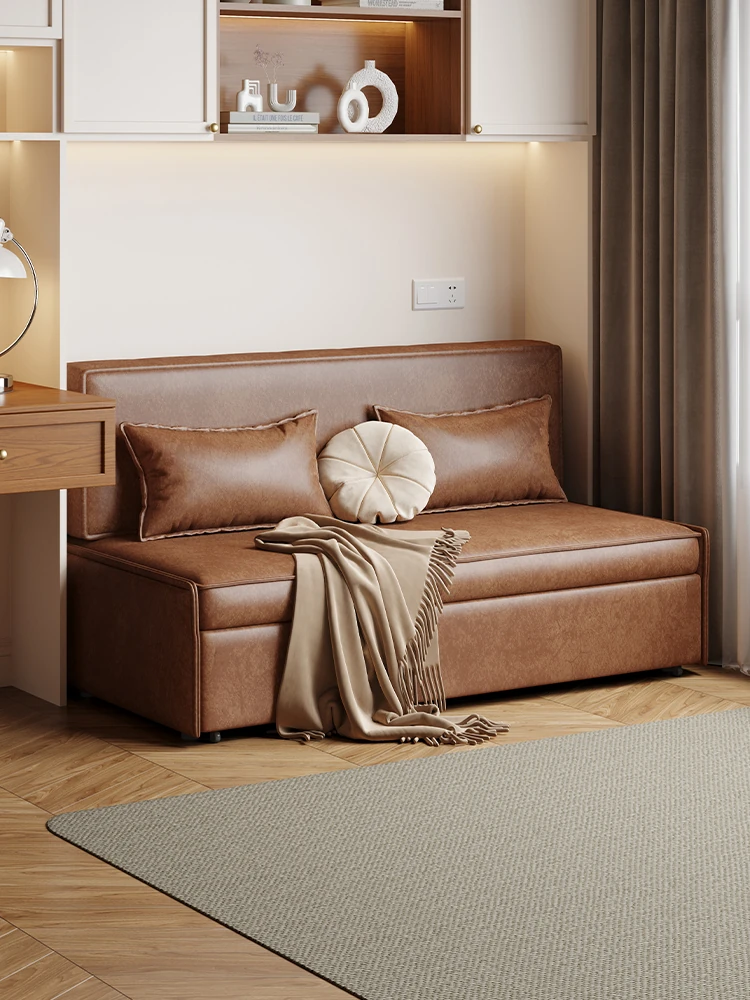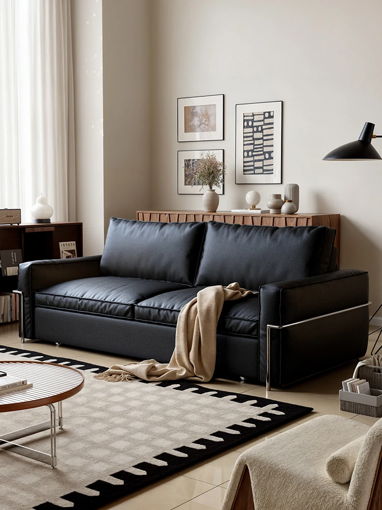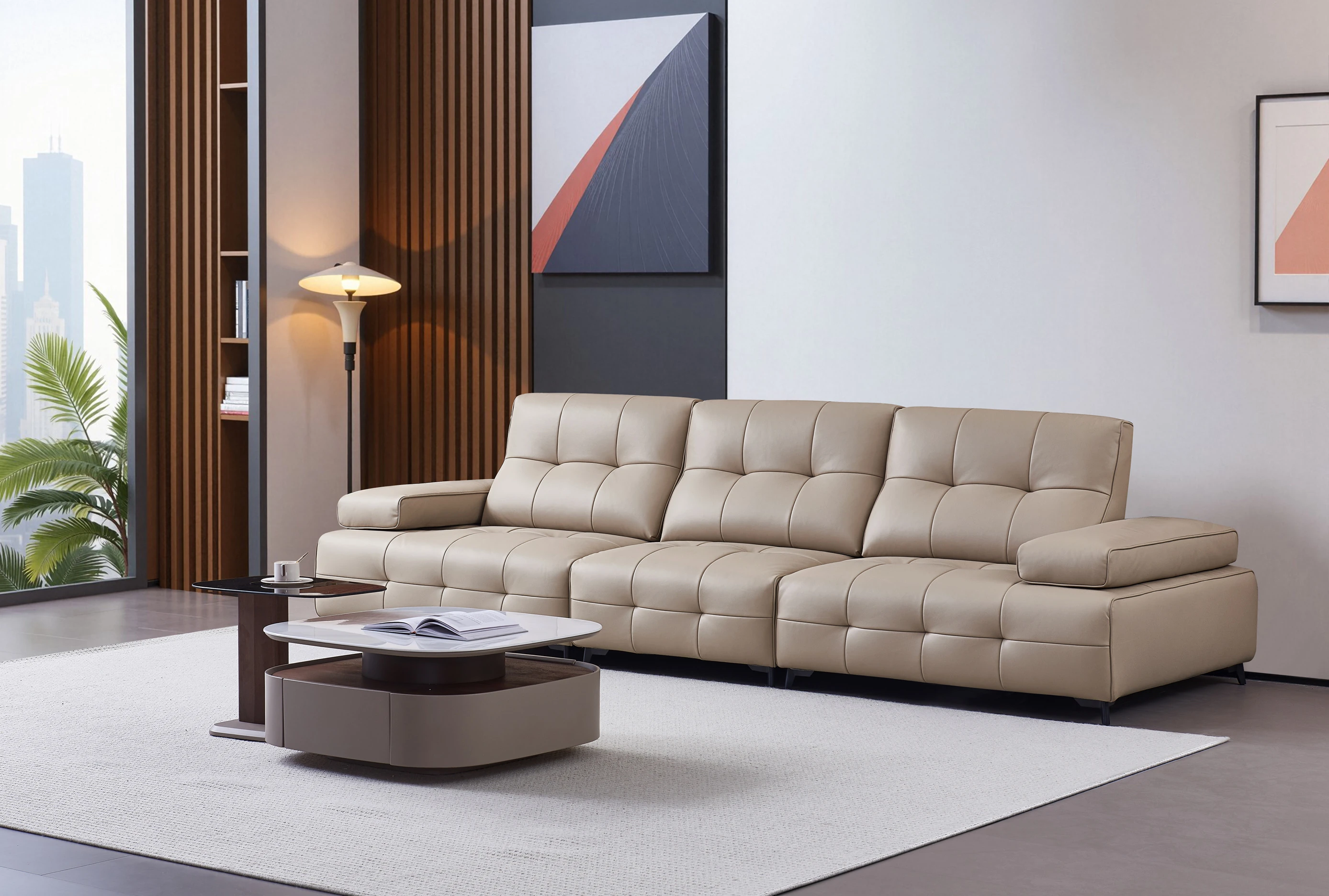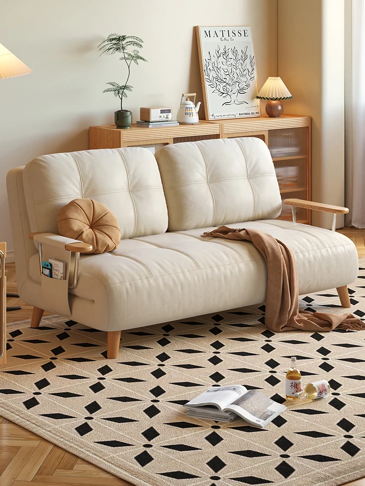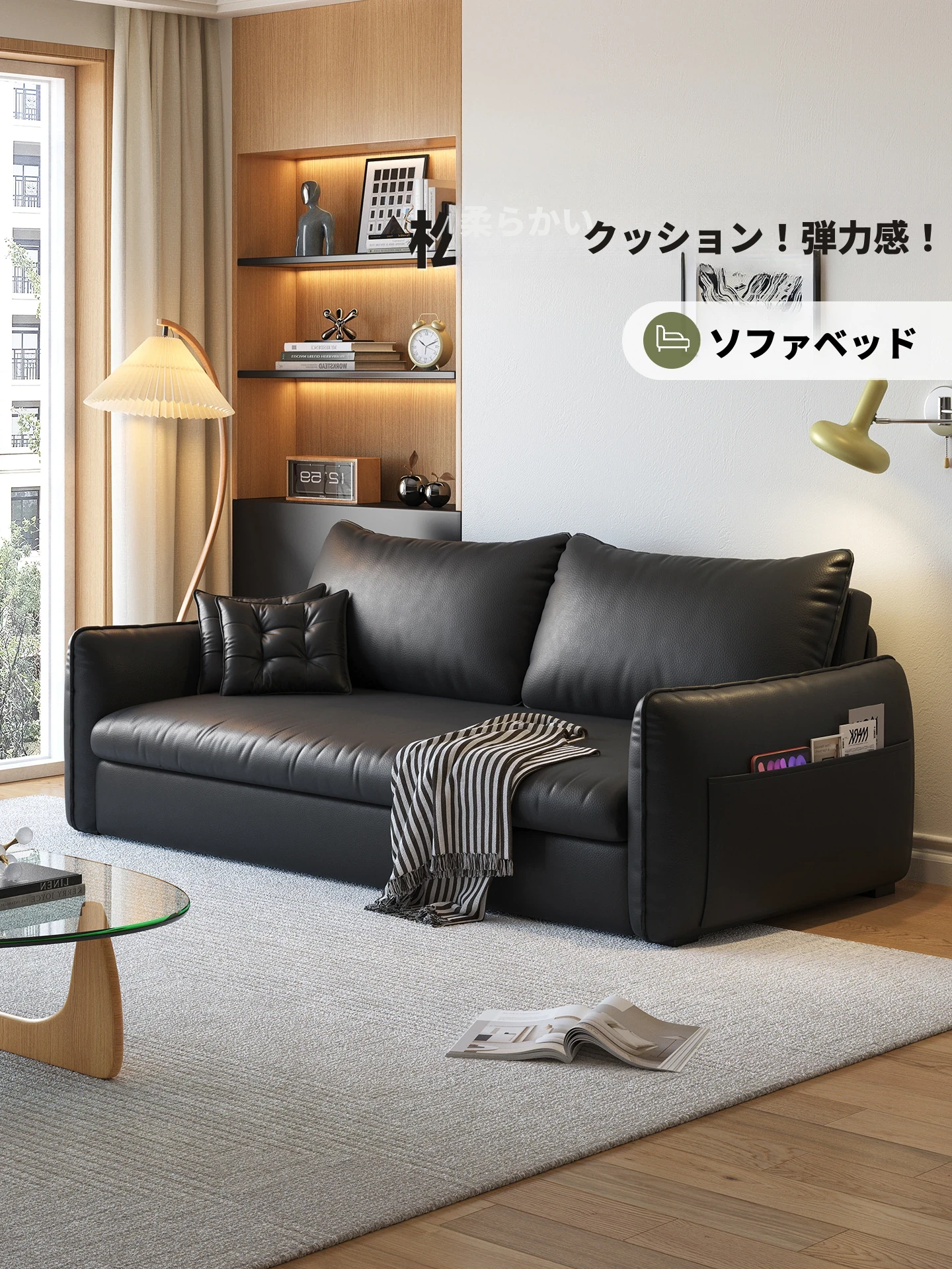 島氏本革電動多機能イタリアンミニマリストソファベッド - モダンでシンプルなリビングに最適、スマートに伸縮可能なデザインで快適さとスタイルを両立!