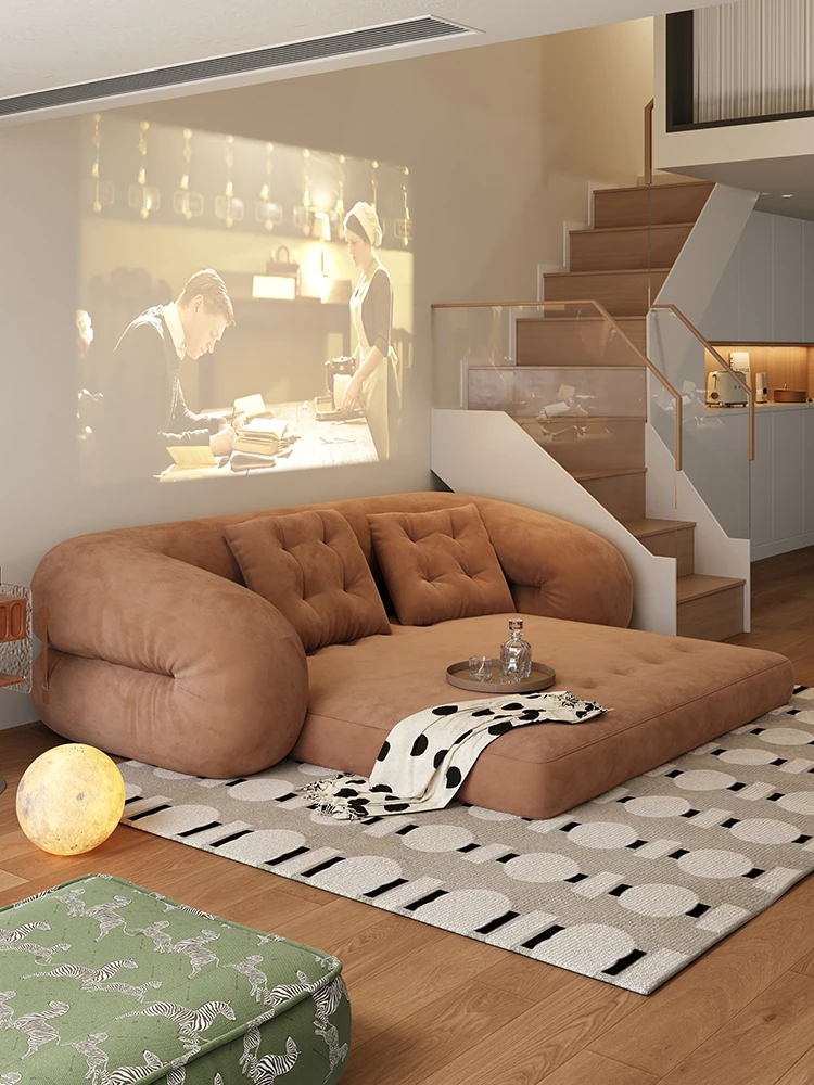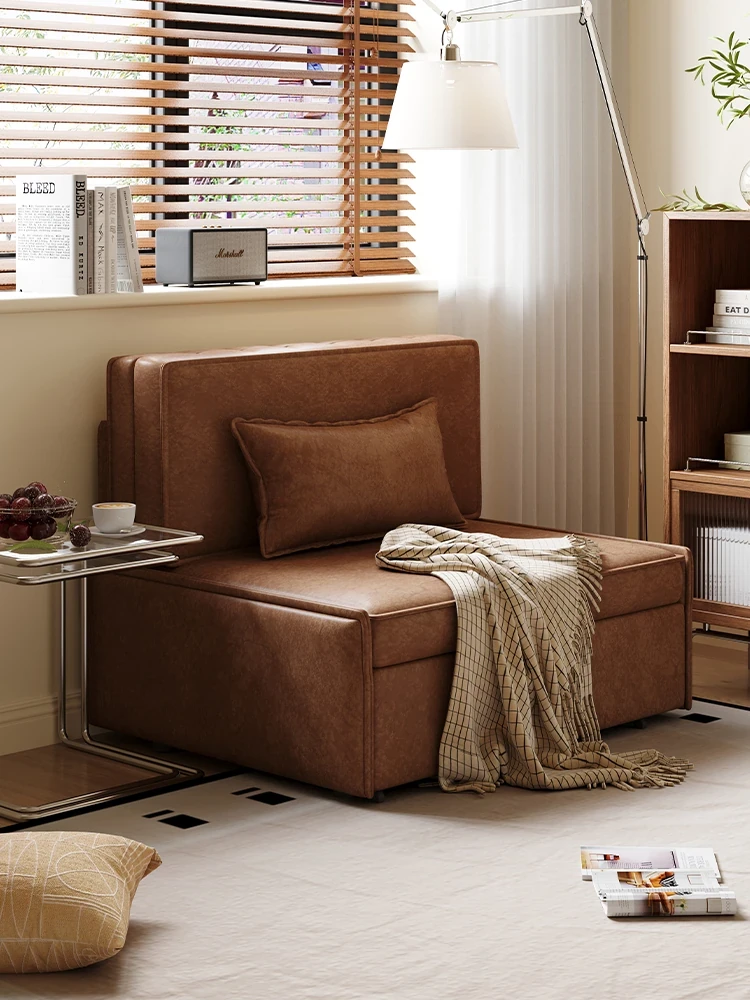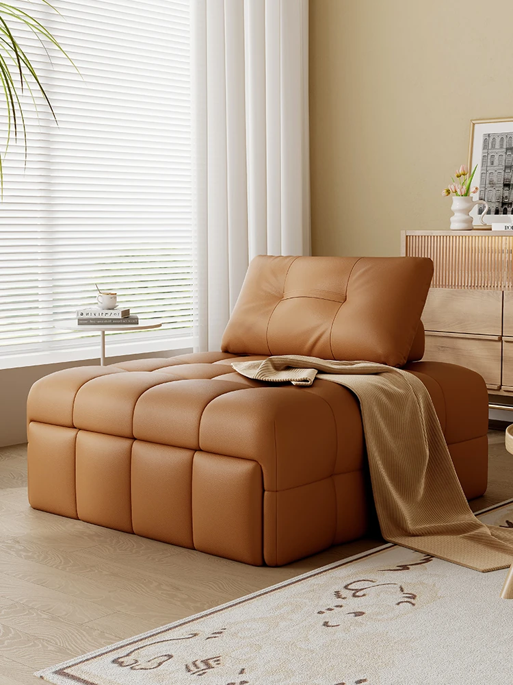クリーミーな風合いのキャットグラブ皮製泡立ちソファベッド、リビングにぴったりな一人用折りたたみ式、座る・寝る両用の豆腐型ブロック、ラクな姿勢でくつろげる貴妃椅子!