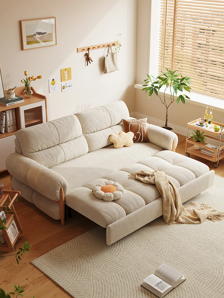 木宮工房のクリームシューソファー - リビングに最適なコンパクトサイズ、伸縮可能で折りたたみ式の2WAYデザイン。2025年新作、快適さとスタイルを両立したおしゃれなソファベッド!