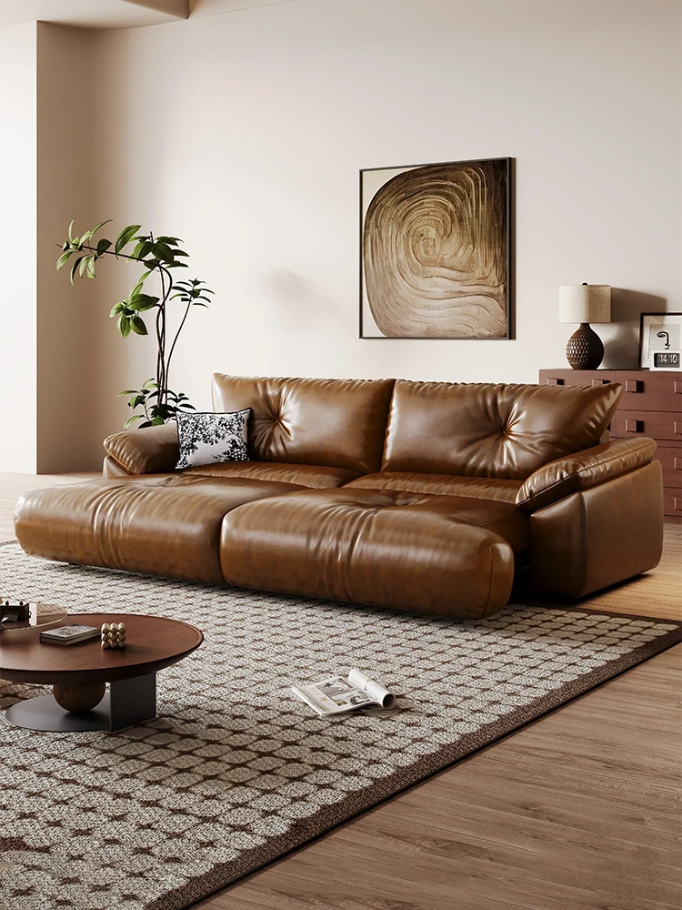 フランス風レトロ電動ソファ|リビングに最適な調整可能な高背もたれ|ヴィンテージオイルワックスレザー製ソファベッド|快適さとスタイルを兼ね備えた一品!