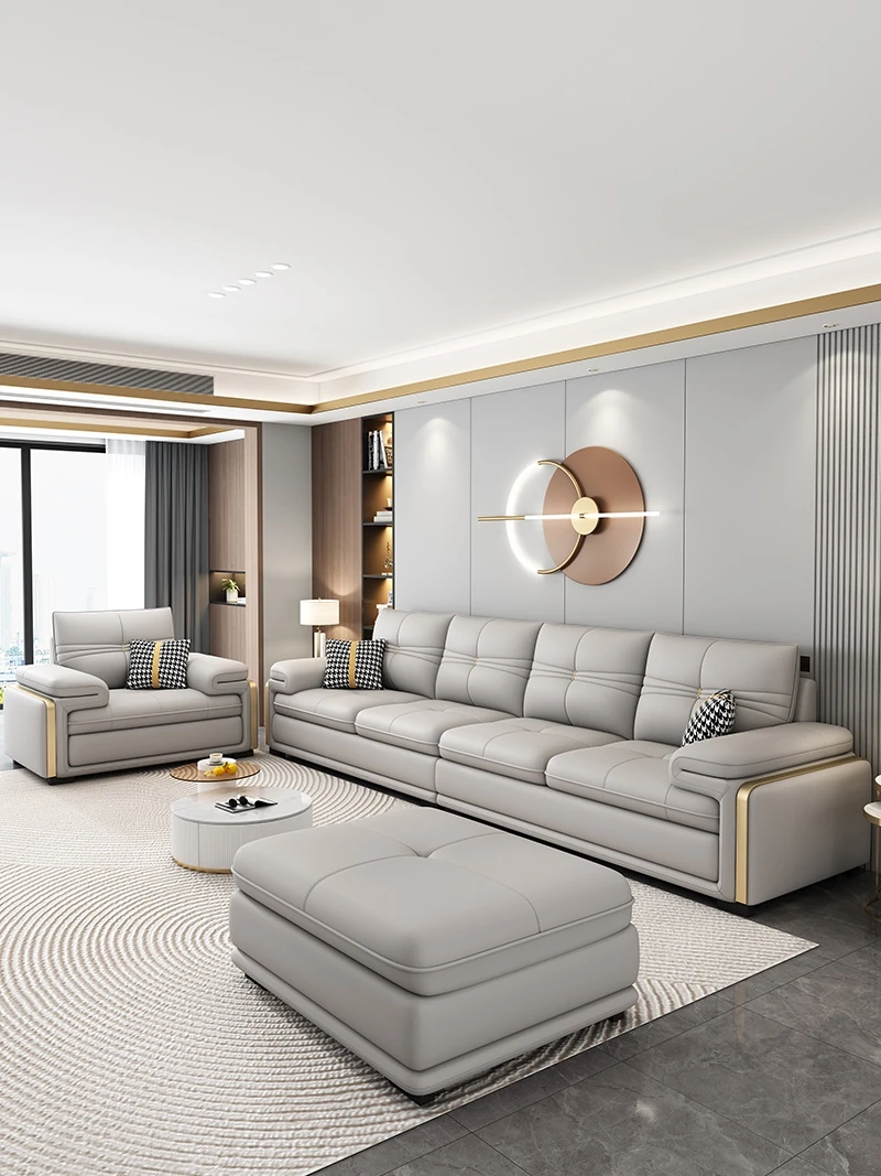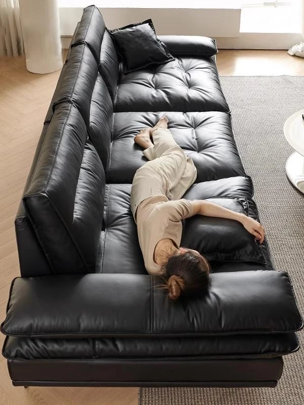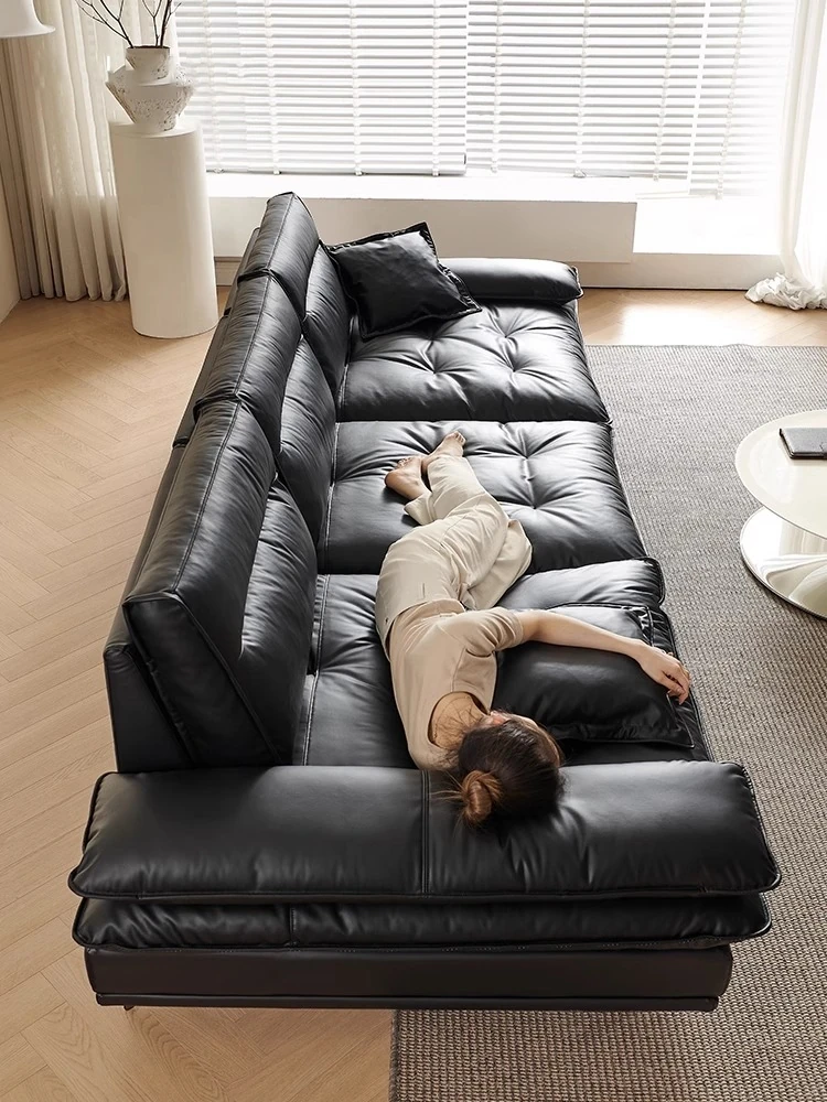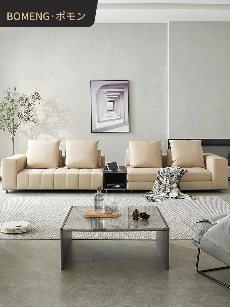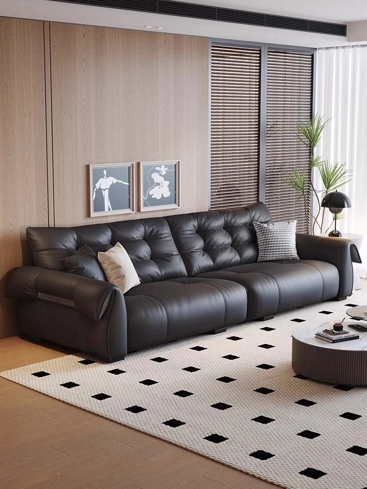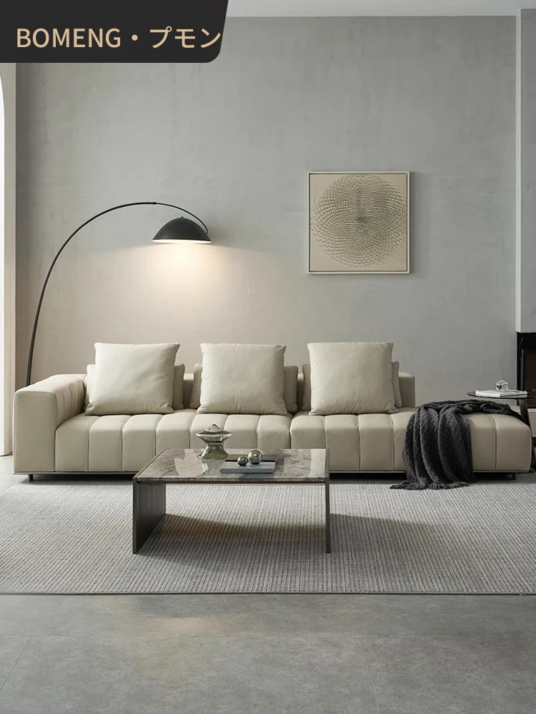 イタリアンラグジュアリー極簡真皮ソファー - モダンでシンプル、小型住宅に最適な2024年新作トップグレインレザーソファ。洗練されたデザインで、心地よいリビング空間を演出します。