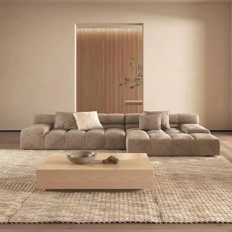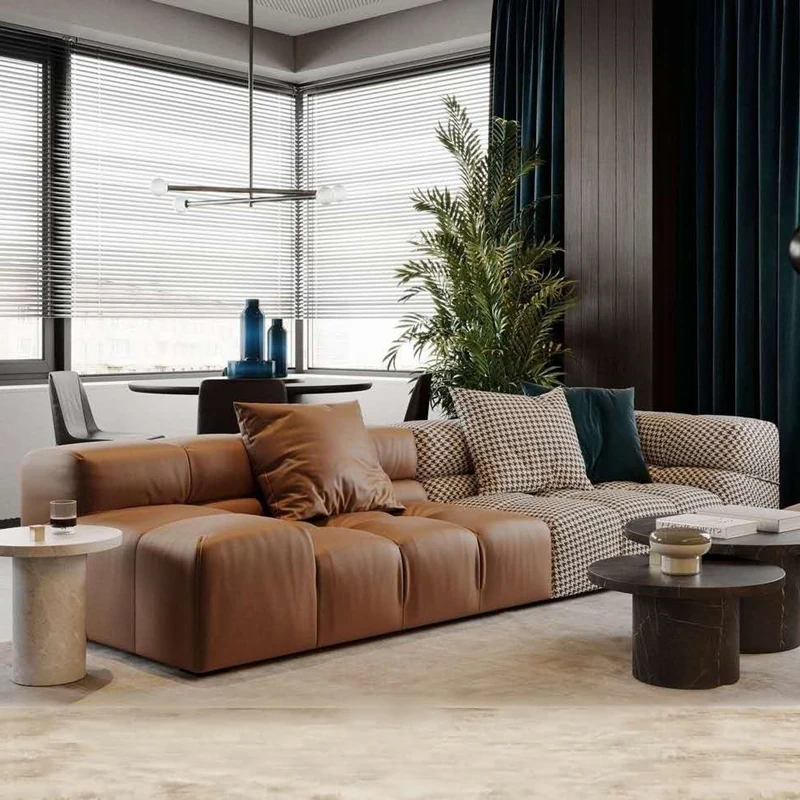 イタリアンミニマルテクノロジー布製ソファ - リビングルーム用のモジュール式コンビネーション。大きなサイズから小型まで、コントラストカラーで北欧のラグジュアリー感を演出し、千鳥格子模様のソフトデコレーションで洗練された空間を実現!