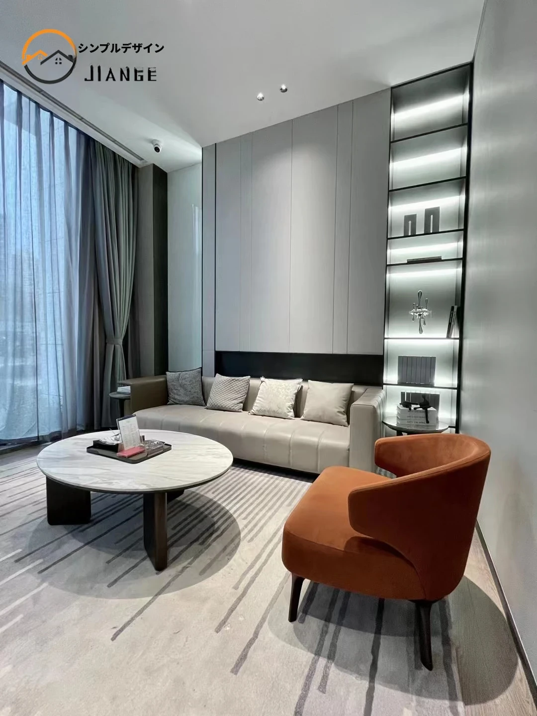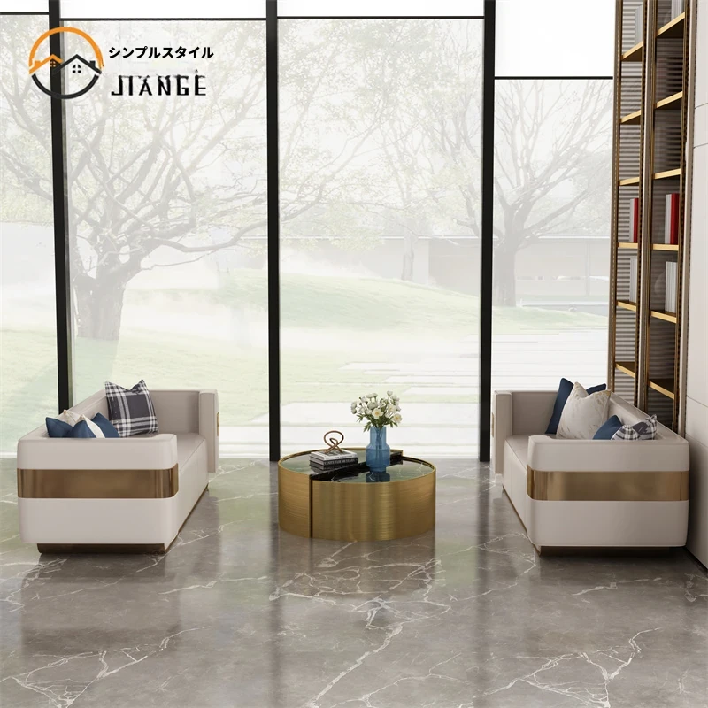 モダンミニマリストスタイルの皮革&布製ソファ|ホテルのラウンジやエステサロンに最適な接客用ソファとテーブルセットで、上質なひとときを演出します!