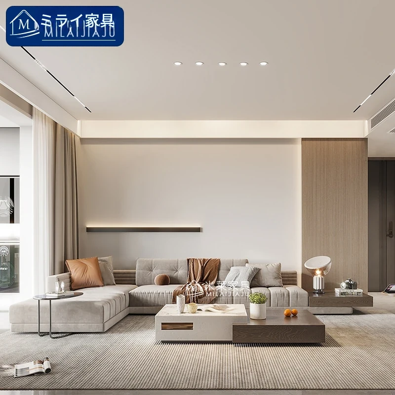 北欧スタイルのシンプルなリビング布製デザイン、洗練された家用ソフトインテリア、レザーとファブリックの絶妙なコンビネーション、ダブル3人掛けのカジュアルソファで心地よいひとときを。