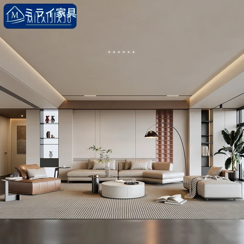 イタリアンデザインのラグジュアリー本革コーナーソファ - シンプルで洗練されたピアノキーのスタイル、ヴィラのモデルルームにぴったり!