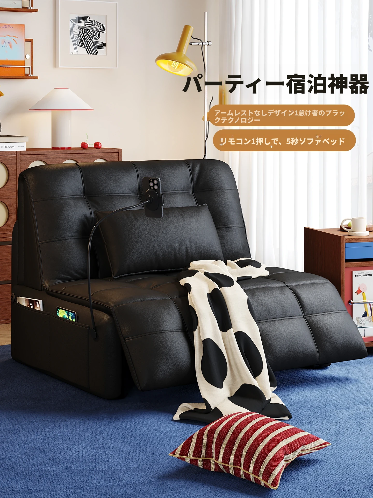 電動本革ソファー ブラックシュガー フレンチビンテージスタイル リビング用 ブラックトップグレインレザー クラウド 多機能ソファベッド