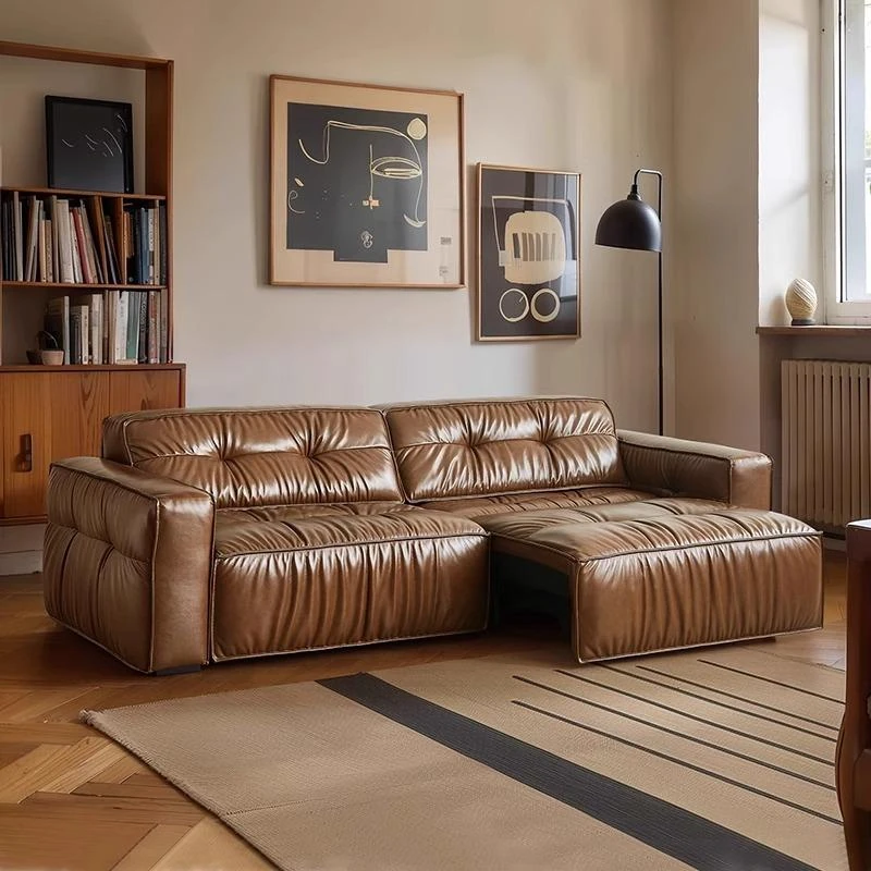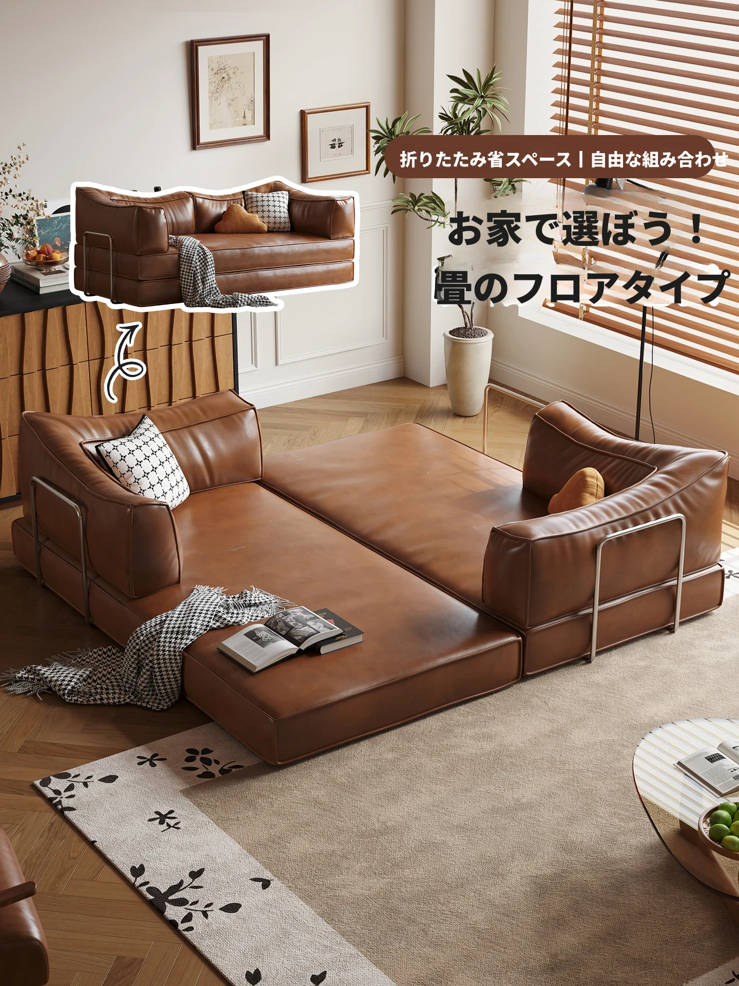 トースト電動スライドソファ|イタリアンミニマル・レトロデザイン|リビングに最適なオイルワックス本革ソファ|背もたれなしで自由なレイアウトを楽しめるソファベッド!
