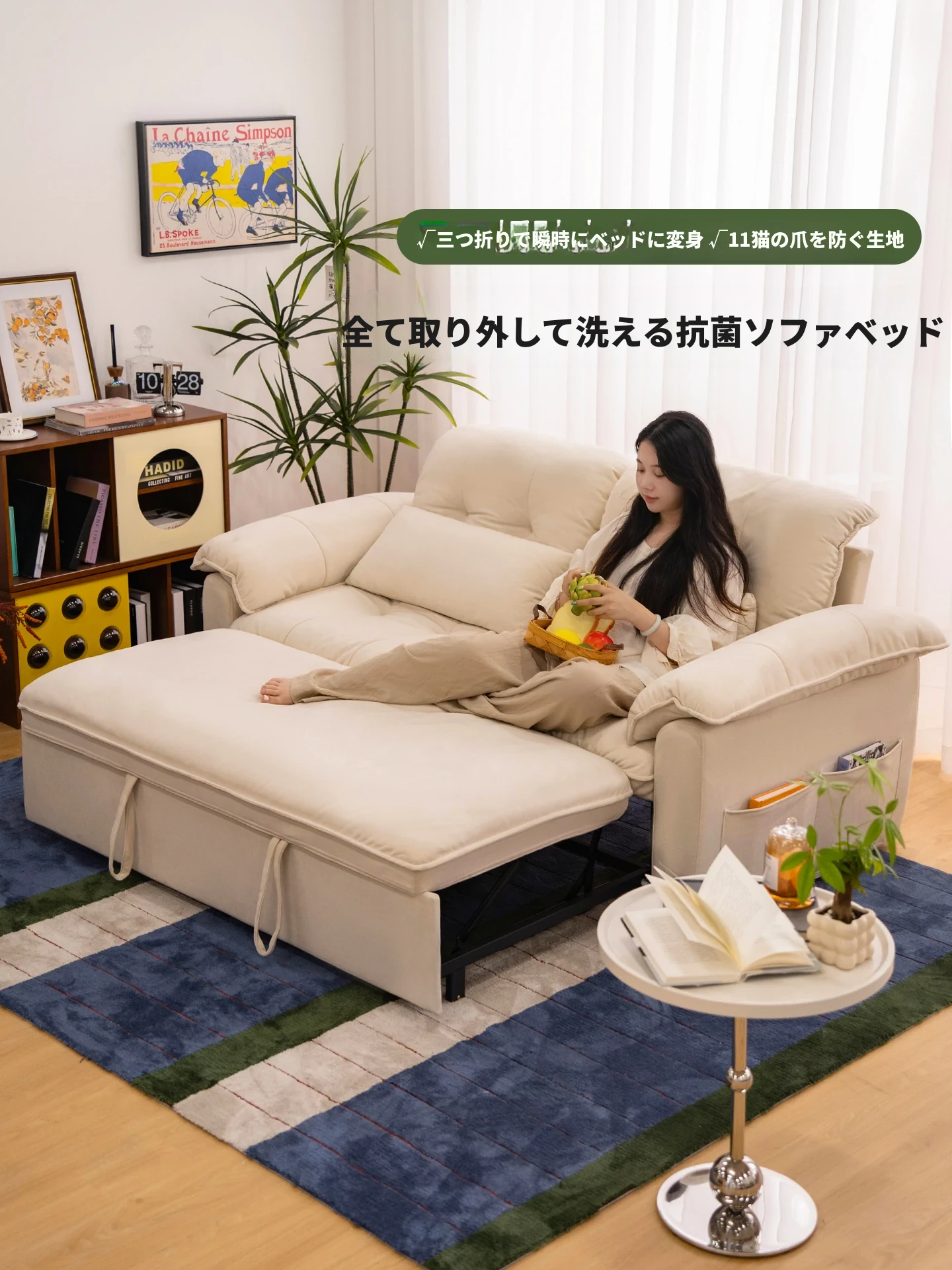 【香港・マカオ送料無料】折りたたみソファベッド!2024年新作、シンプルでおしゃれなクリーム風ソファ。リビングにぴったりな二用途で、快適なひとときをお届けします!