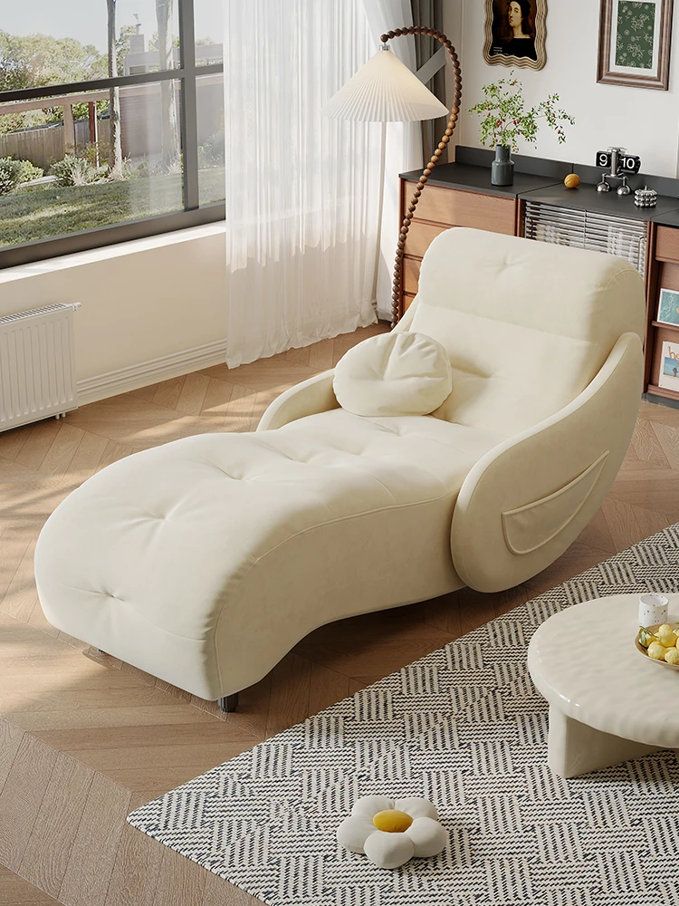 フランス風クリームソフトファブリック一人用デイベッド|リビング・アパート・ホテル・民宿・バルコニー・寝室に最適なリラックスチェア!優雅なデザインで、おしゃれな空間を演出します。