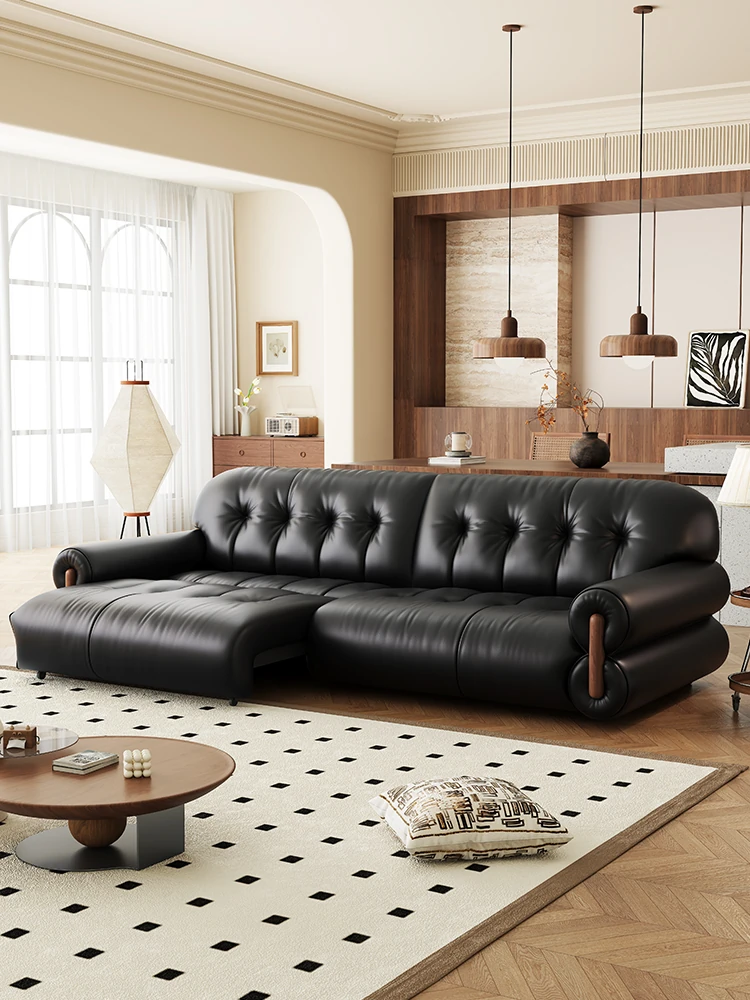 Black Sugar French Vintage Electric Leather Sofa - Luxurious Black Top Grain Cowhide Cloud Multi-Functional Sofa Bed for Your Living Room