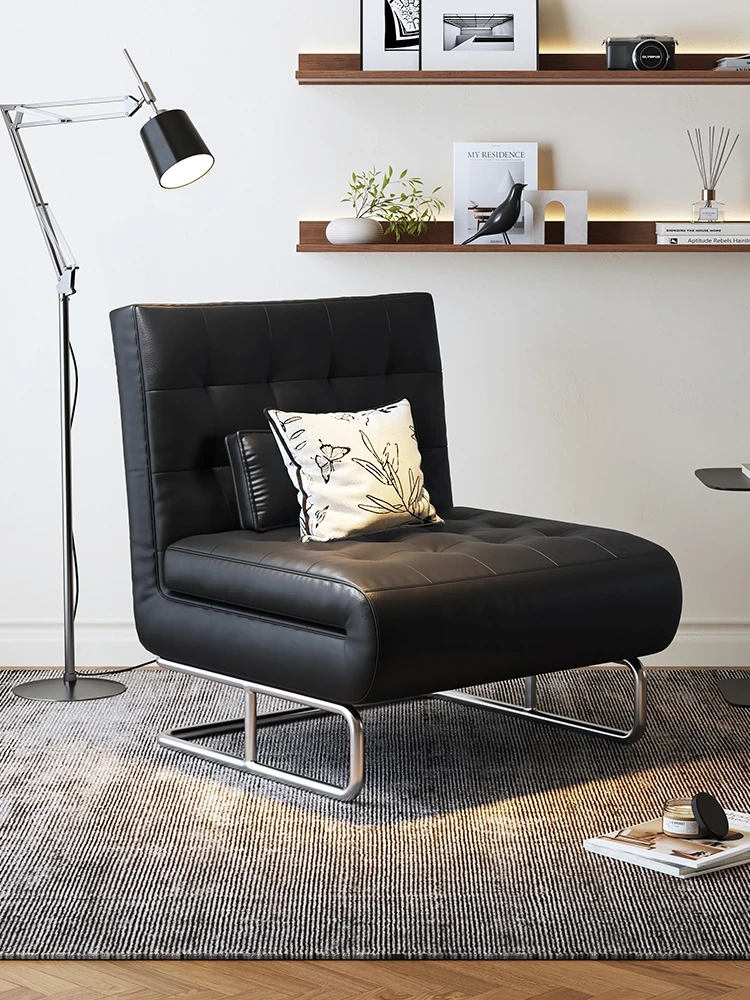 Foldable Italian Minimalist Bauhaus Sofa Chair - Multifunctional Genuine Leather Designer Lazy Sofa for Relaxation and Comfort