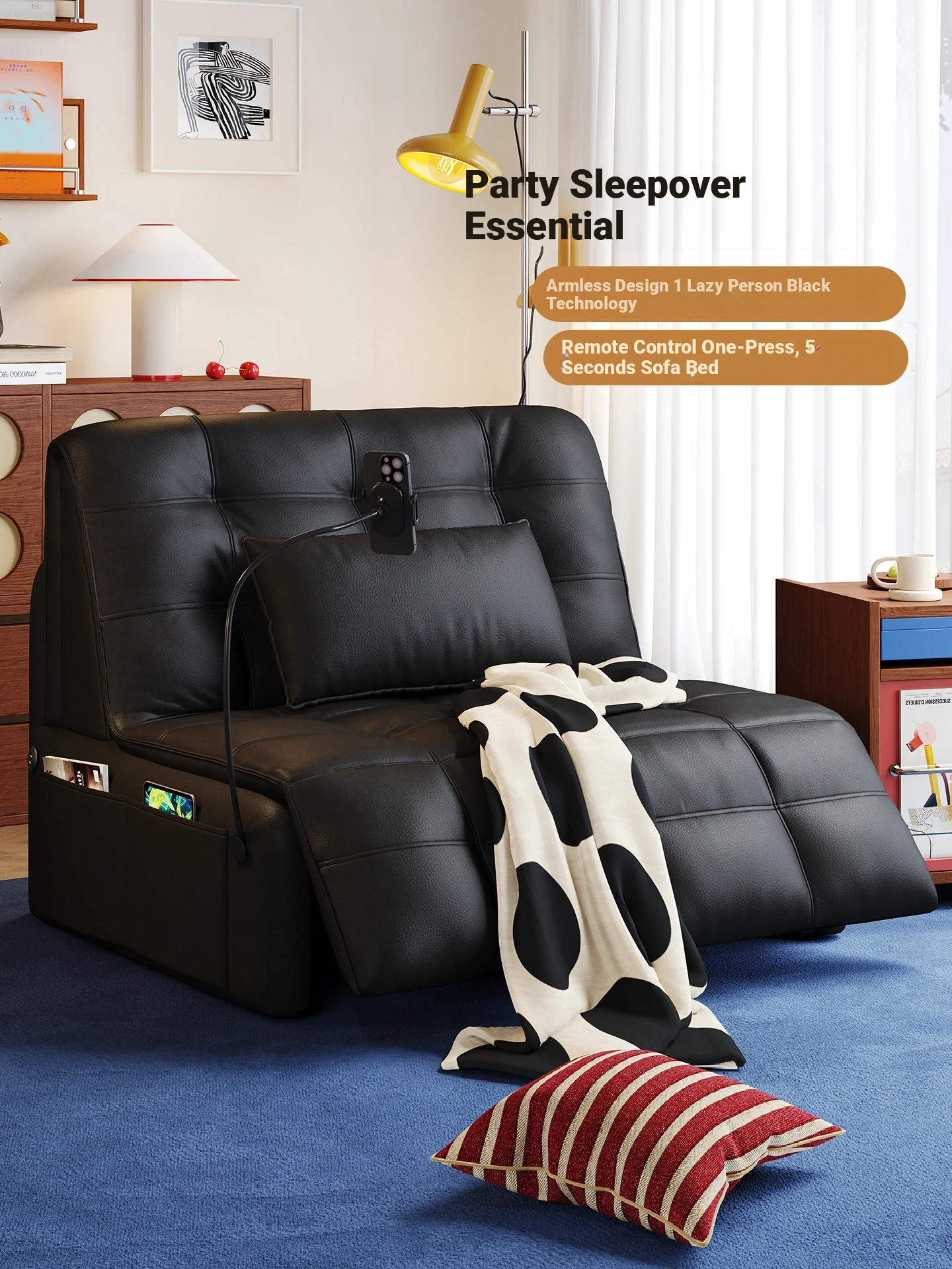 Mugong Crafts Minimalist Black Folding Sofa Bed - 2025 New Model, Versatile Single Recliner for Relaxation and Sleep