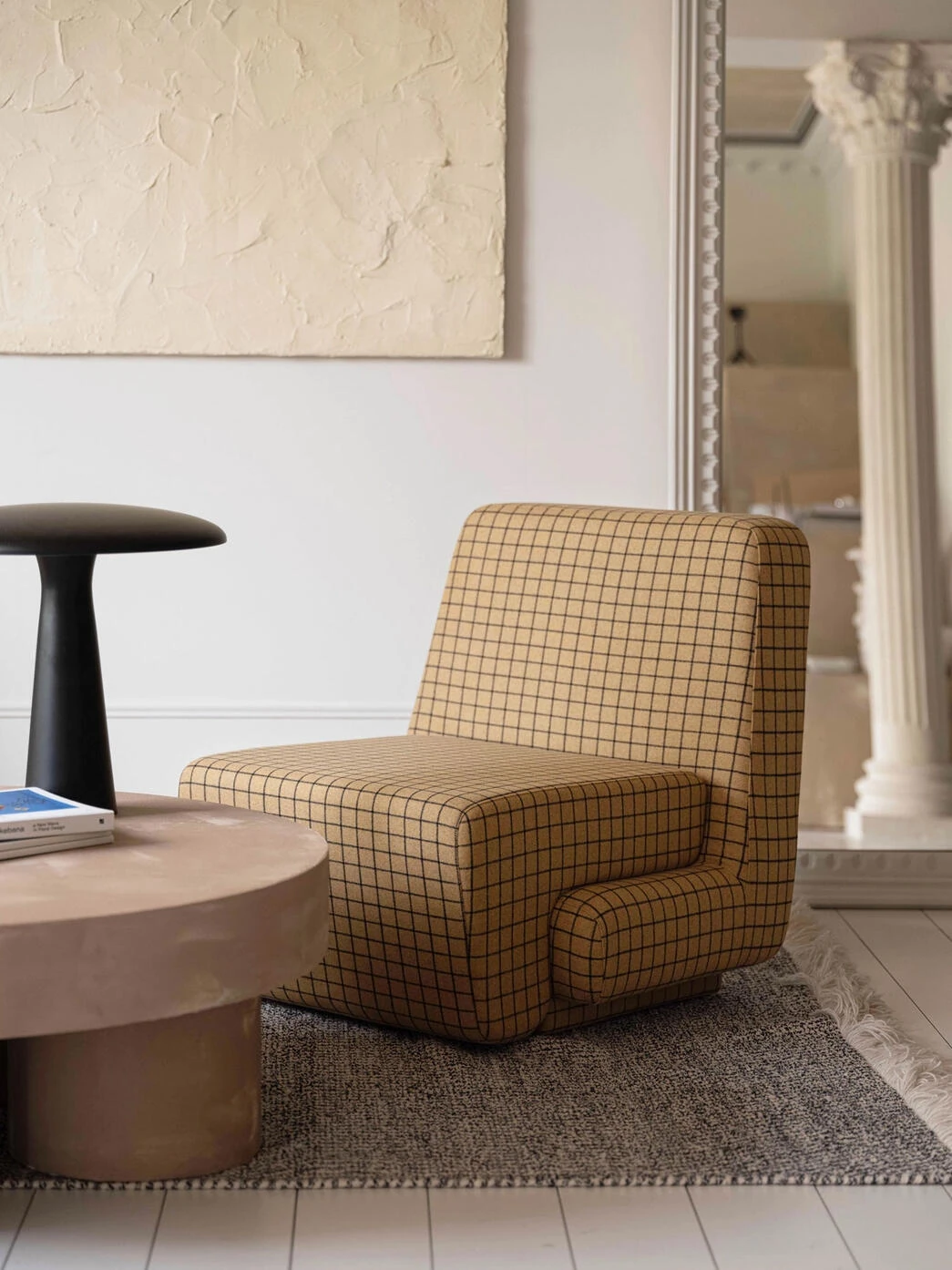 Chic Vintage Plaid Single Sofa Chair - French Retro Style for Living Room and Balcony, Cozy Fabric Armchair with Unique Striped Design