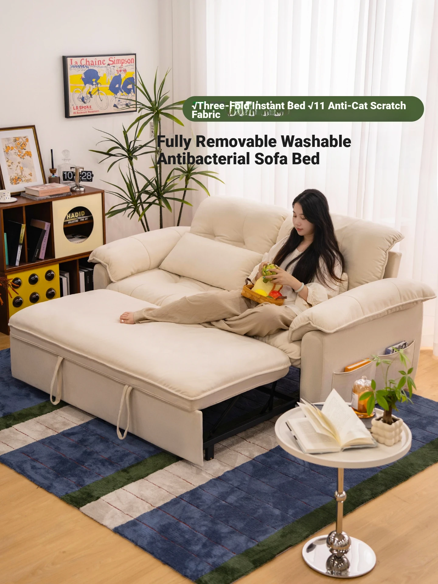 2025 New Cream Multifunctional Convertible Sofa Bed - Space-Saving 2-in-1 Design for Small Living Rooms, Stylish and Practical Upholstered Pull-Out Couch
