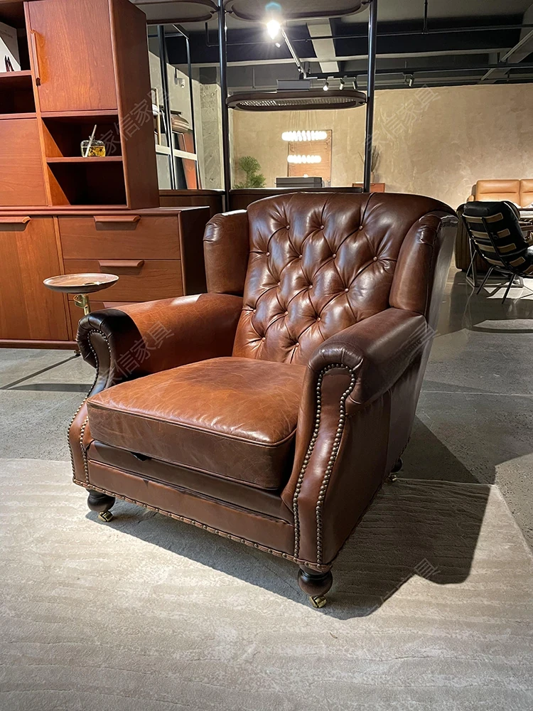 Vintage American Style Tiger Armchair - Genuine Leather Single Sofa with Oil Wax Finish, Perfect for Cigar Enthusiasts and Relaxation. Ideal for Your Home or Study, Embrace the Godfather Vibe!